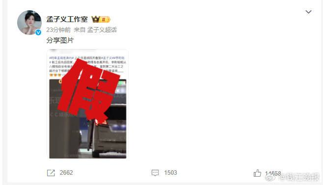 【孟子义工作室辟谣孟子义李昀锐恋情】#工作室辟谣孟子义李昀锐恋情# 11日,网上#曝孟子义李昀锐恋情#。刚刚,孟子义工作室发博表示:“假”。#孟子义[超话]#(新浪娱乐)