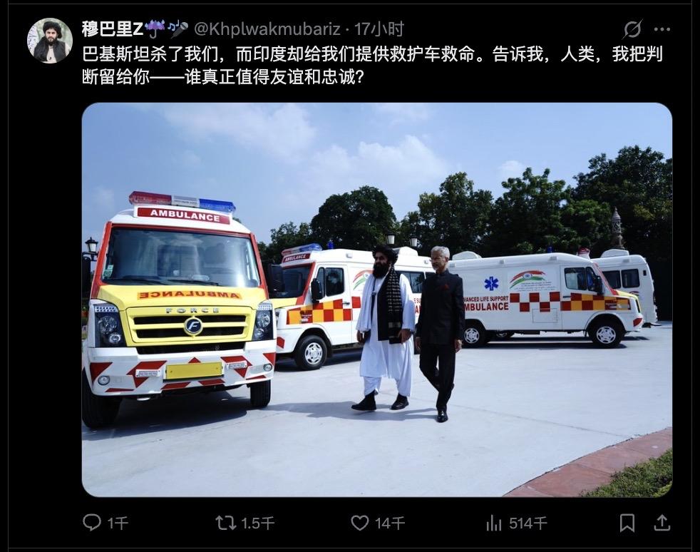 这两天阿富汗和巴基斯坦干起来了,印度人立即承认塔利班政府合法性,外网大骂印度极其虚伪的投机行为。 事情是这样的:巴基斯坦在其与阿富汗边境打了一仗,结果印度人立即看到了机会,就站到了阿富汗塔利班政府一边,印度外长苏杰生说要支持阿富汗主权领土完整。印度甚至立即升级了喀布尔的代表处为正式大使馆,并捐助了一些医疗设备和人道援助。 塔利班组织一直被视为恐怖组织,塔利班自2021年掌权阿富汗后,俄罗斯是唯一一位承认他们的合法性,全世界再没有其他国家承认,即便中方与阿富汗在经贸上热议升温,但也没有明确承认。因此,印度是第二个承认塔利班政府的大国。 外网上对印度的投机行为是一片骂声。基本的观点是痛骂印度的无耻和虚伪:印度一直自称反对并打击一切恐怖分子,但今天他却为了反对巴基斯坦,与恐怖分子塔利班站在一起,真是太可耻了。 塔利班官员也很兴奋,他在推上发帖称“巴基斯坦杀了我们,而印度却给我们提供救护车救命。告诉我,人类,我把判断留给你——谁真正值得友谊和忠诚?”印巴冲突 塔利班