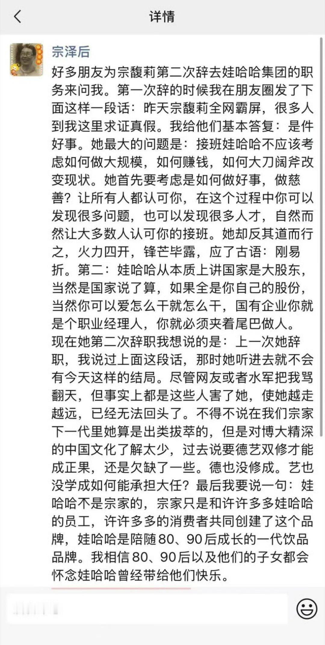 宗泽后称水军害了宗馥莉这个连外人都不如,不厚道的宗泽后表示:尽管网友或者水军把我