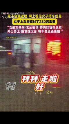 河南民权,男子自驾返程,顺路捎了位女子。对方付230元,突然,他把车费退还给女子。只因女子的丈夫去世了,把两个孩子留家里,女子一个人外出打工赚钱,他觉得太苦了,真的是不容易。 据AHTV第一时间10月10日报道,国庆假期结束后,河南民权的公路上,返程的车流渐渐多了起来。 李大哥开着自家的小轿车,正往浙江宁波赶,他在宁波的工厂上班,这趟是从老家返程复工。 看着副驾和后座空荡荡的位置,李大哥想起之前刷手机时,在本地搭车群里看到的一条信息:一位女子要去宁波慈溪,和自己的行程刚好顺路。 当时他想着,顺路捎个人,既能有人路上说说话,还能凑点油钱,就主动给对方发了消息,约定好出发当天去女子家里接她。 到了约定的时间,李大哥按照女子给的地址,找到她住的村子。 女子已经收拾好行李,一个不算大的帆布包,手里还攥着个塑料袋,里面装着几件换洗衣物。 见李大哥的车到了,女子连忙道谢,把行李放进后备箱,坐进了副驾。 刚系好安全带,她就从口袋里掏出230元现金,递到李大哥面前:“大哥,这是之前说好的车费,你先拿着。” 李大哥没多想,接过来塞进了副驾的储物格里,说了句“路上慢,咱们慢慢开”,就发动车子上了路。 车开上高速后,阳光透过车窗照进来,路上的车不算密集。 一开始两人没怎么说话,后来女子看着窗外掠过的农田,主动开口问李大哥是不是常从老家往宁波跑。 李大哥说自己在宁波上班三年了,每年也就国庆和春节回两次家。 就这么一来一回聊开了,从老家的天气聊到宁波的物价,车厢里的气氛渐渐热络起来。 大概开了三个小时,快到服务区的时候,女子的手机突然响了。 她接起电话的瞬间,声音一下子放软:“妈妈在开车呢,你和弟弟在家乖不乖?” 可没说两句,电话那头就传来孩子的哭声,先是小的那个带着哭腔喊“妈妈我想你”,接着大的也跟着劝“妈妈你早点回来”。 女子的声音开始发颤,到最后,眼泪顺着脸颊往下掉,挂了电话还在偷偷抹眼睛。 李大哥从后视镜里看到这一幕,悄悄把车速放慢了些,等女子擦完眼泪,才轻声问:“妹子,是不是家里孩子不放心你?” 女子吸了吸鼻子,慢慢说起了自己的情况。 她今年三十多岁,去年冬天,老公因病走了,家里就剩她和两个孩子,大的13岁上初中,小的才5岁刚上幼儿园。 家里没什么积蓄,靠种地根本不够养孩子,没办法,只能出来打工,把孩子托付给老家的婆婆照看。 这次去慈溪,是朋友介绍了个电子厂的活儿,想着能多挣点钱,年底好给孩子买新衣服、交学费。 听女子说完,车厢里又安静了下来。 李大哥没再说话,心里却一直在琢磨:一个女人家,没了丈夫,带着俩孩子,还得背井离乡去打工,这日子得多难。 他想起自己刚才收的230元,这钱对自己来说,也就够加半箱油,可对女子来说,说不定是孩子好几天的伙食费,或是能给孩子买两本练习册、几包奶粉。 这么一想,他心里就有了主意。 下午四点多,车子终于到了女子要去的工厂门口。 李大哥把车停在路边,女子解开安全带,正准备去后备箱拿行李,李大哥突然从储物格里拿出那230元,递到她面前。 女子愣了一下,连忙摆手:“大哥,这钱不能要,说好的车费怎么能退呢?” 李大哥按住她的手,把钱塞到她手里:“妹子,你听我说,你一个人带着俩孩子不容易,这钱你留着,比我凑油钱实在。出门在外,谁还没个难的时候,能帮一把是一把。” 女子拿着钱,眼眶又红了,站在车边,嘴里不停说着“谢谢”,直到李大哥开车走了,还在路边挥手。 今天的分享到这里就结束了,大家对此事有何看法,欢迎在评论区留言和讨论,感兴趣的可以点击头像加关注,我将每日更新优质内容,我们下期见。 信源: 原文登载于AHTV第一时间2025年10月10日关于《男子自驾返程,网上看见女子搭车信息,女子上车后支付了230元车费,聊天中得知女的30多岁,老公去世,将两娃留在老家外出务工,感觉她太苦,将车费退还给她》的报道