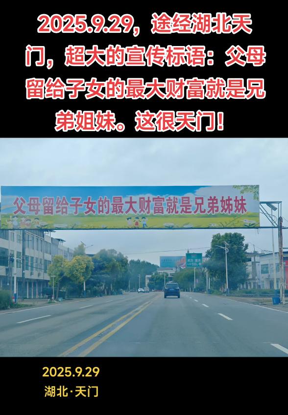 朋友们,这太魔幻了。有网友途经湖北天门,发现马上来写了标语:父母给孩子最大的财富
