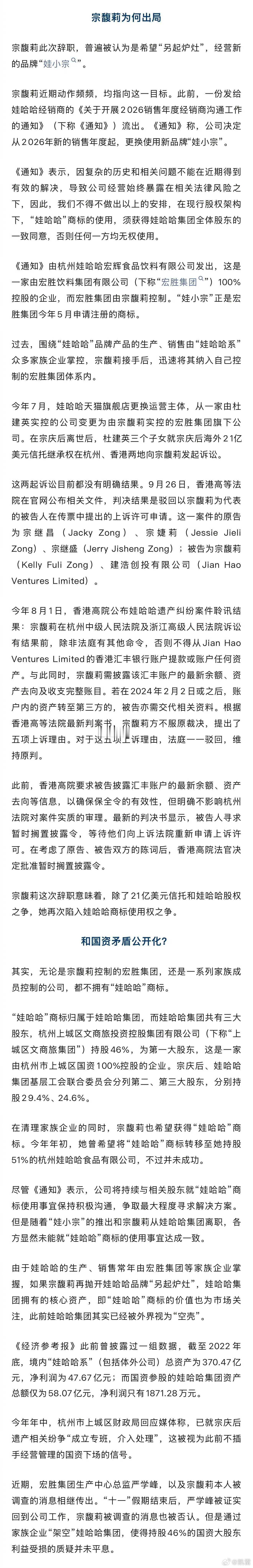 宗馥莉将把娃哈哈带向何方? 连连看,叔叔宗泽后似乎是对的,不是我背刺她,是她赶尽杀绝,水军捧杀了她!