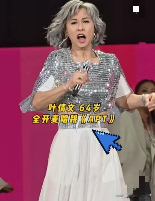 大家别被叶倩文的白发骗了! 她虽然满头白发,外表看上去就跟普通老太太没有什么差别,不过她可不简单实际上她已经64岁了,开演唱会又跳又唱,把年轻人都看呆了! 她满头白发站在舞台上,一开口唱《Ain't No Mountain High Enough》,又跳又唱全程全开麦,气息稳得像CD机。台下00后都在喊:“这哪是64岁,比我还能蹦!” 你以为她是普通老太太?人家演唱会连跳带唱不划水,无垫音的唱功把好多年轻爱豆都比下去了。 这哪是靠年龄博眼球,明明是“铁肺”功力和舞台热爱在撑着。现在年轻人总喊“年纪大了折腾不动”,看看叶倩文,64岁还在舞台上发光,是不是该醒醒了? 你们觉得她这状态像多大?