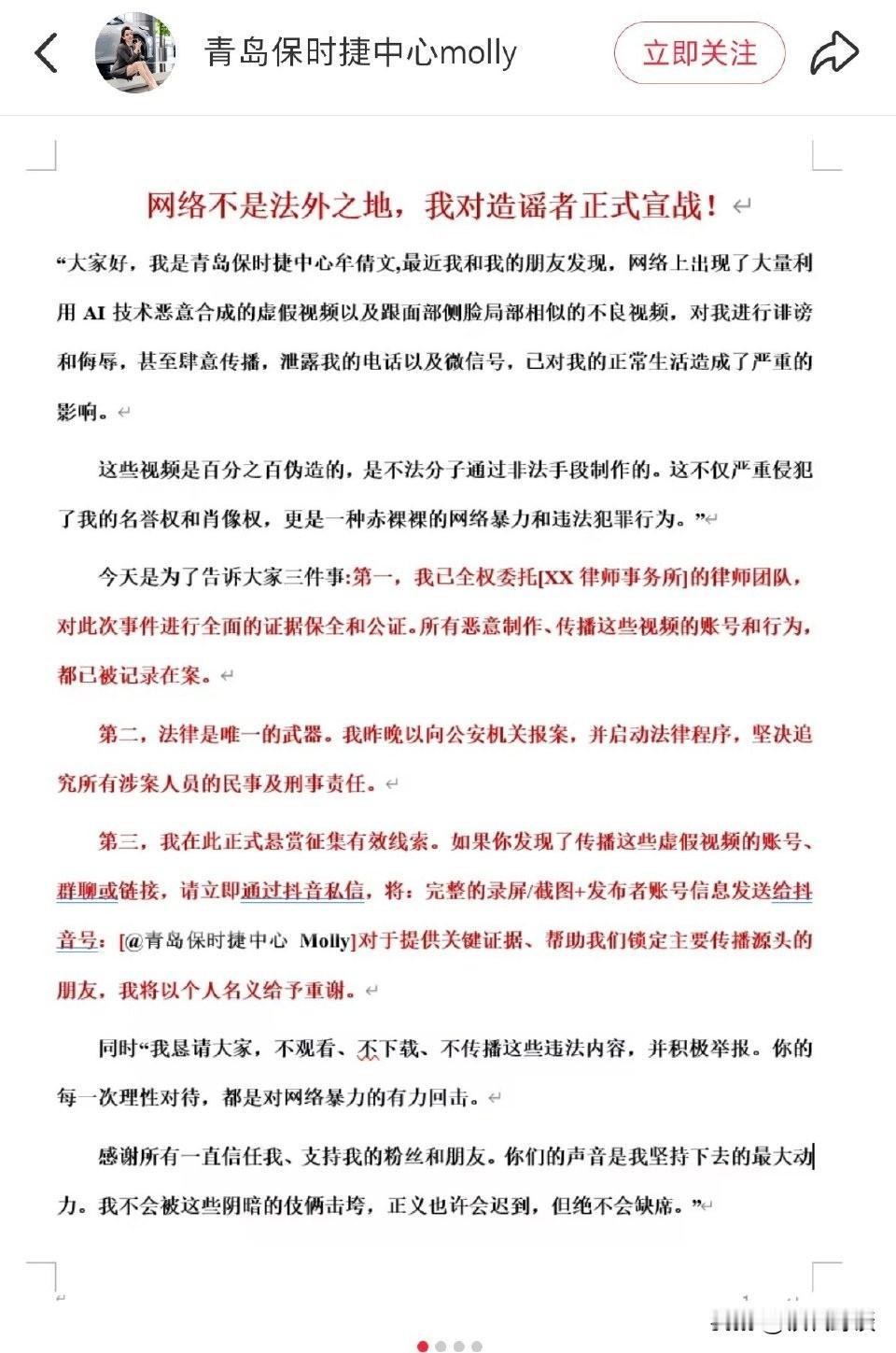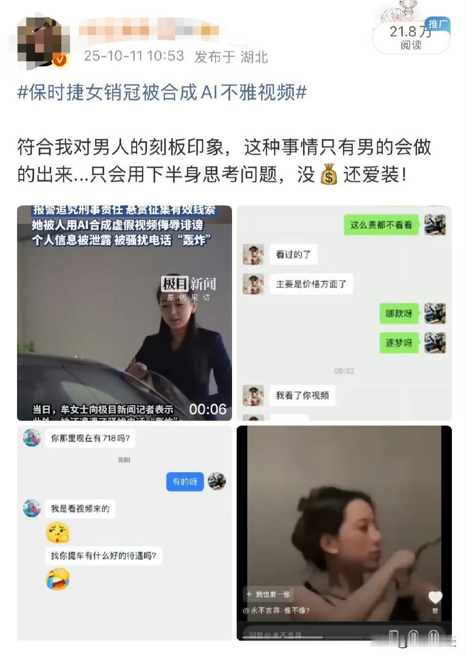 青岛保时捷女销冠竟然被ai拖下水了! 近日,青岛保时捷女销冠被传不雅视频,不过当事人回应为AI恶意合成诽谤!同时已采取相关手段来维护自己的权益。 说实话,该女子年年销冠,必然有过人的优点,那些造谣诽谤人家的人着实是对一些成功女性的嫉妒。 再就是ai这个工具真该管管了,啥都能合成,只有你想不到的,没有它做不到的!