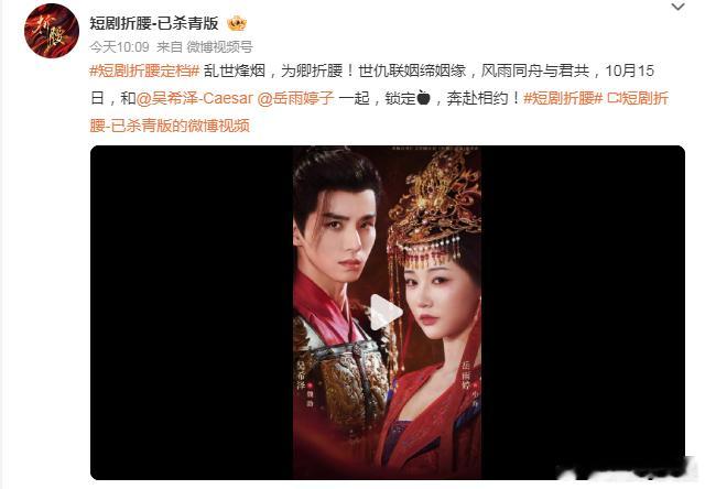 短剧版折腰1015上线 主演短剧版《折腰》1015上线,你期待吗?[思考]短剧来了