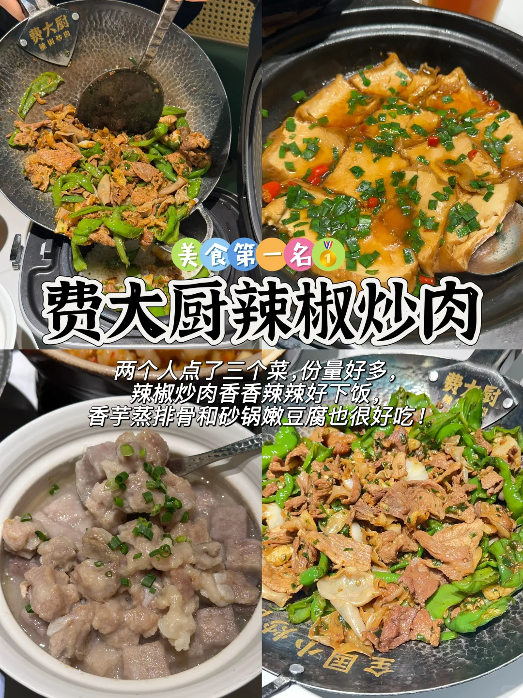 两个人点了三个菜,份量好多,辣椒炒肉香香辣辣好下饭,香芋蒸排骨和砂锅嫩豆腐也很好吃!
