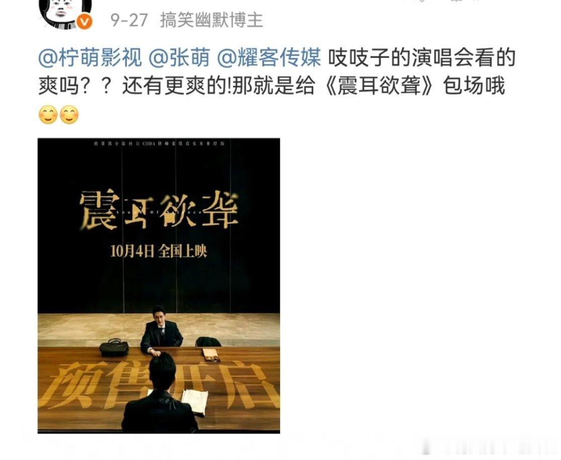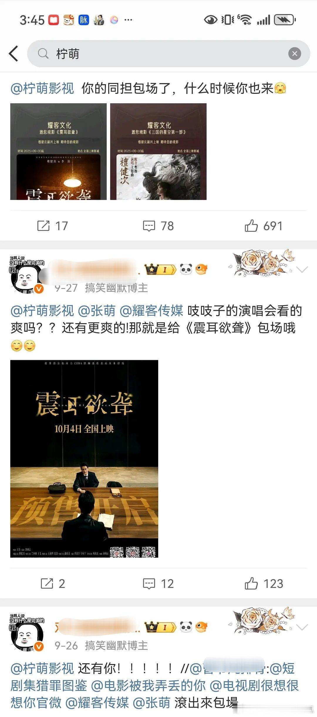 投:檀健次大粉在要求柠萌、耀客给檀儿新电影《震耳欲聋》包场宣传[哆啦A梦吃惊]