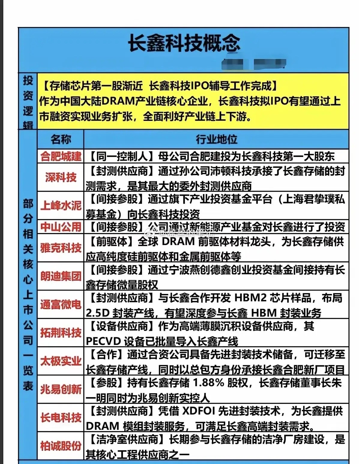 长鑫科技作为中国大陆DRAM产业链核心企业,IPO辅导完成后有望通过上市融资实现业务扩张,其产业链覆盖股权关联、设备供应、封测服务、材料提供、工程建设等多个环节,上下游企业将充分受益于长鑫的发展,形成了具有产业联动价值的投资生态。
