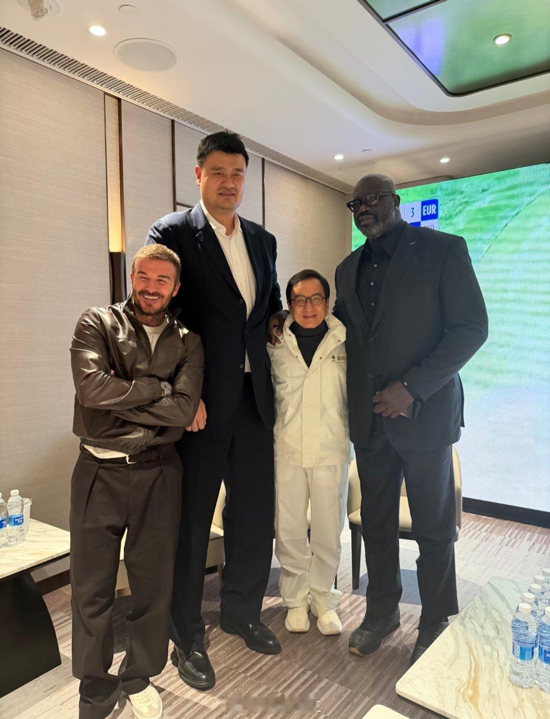 贝克汉姆,姚明,成龙,奥尼尔合照。