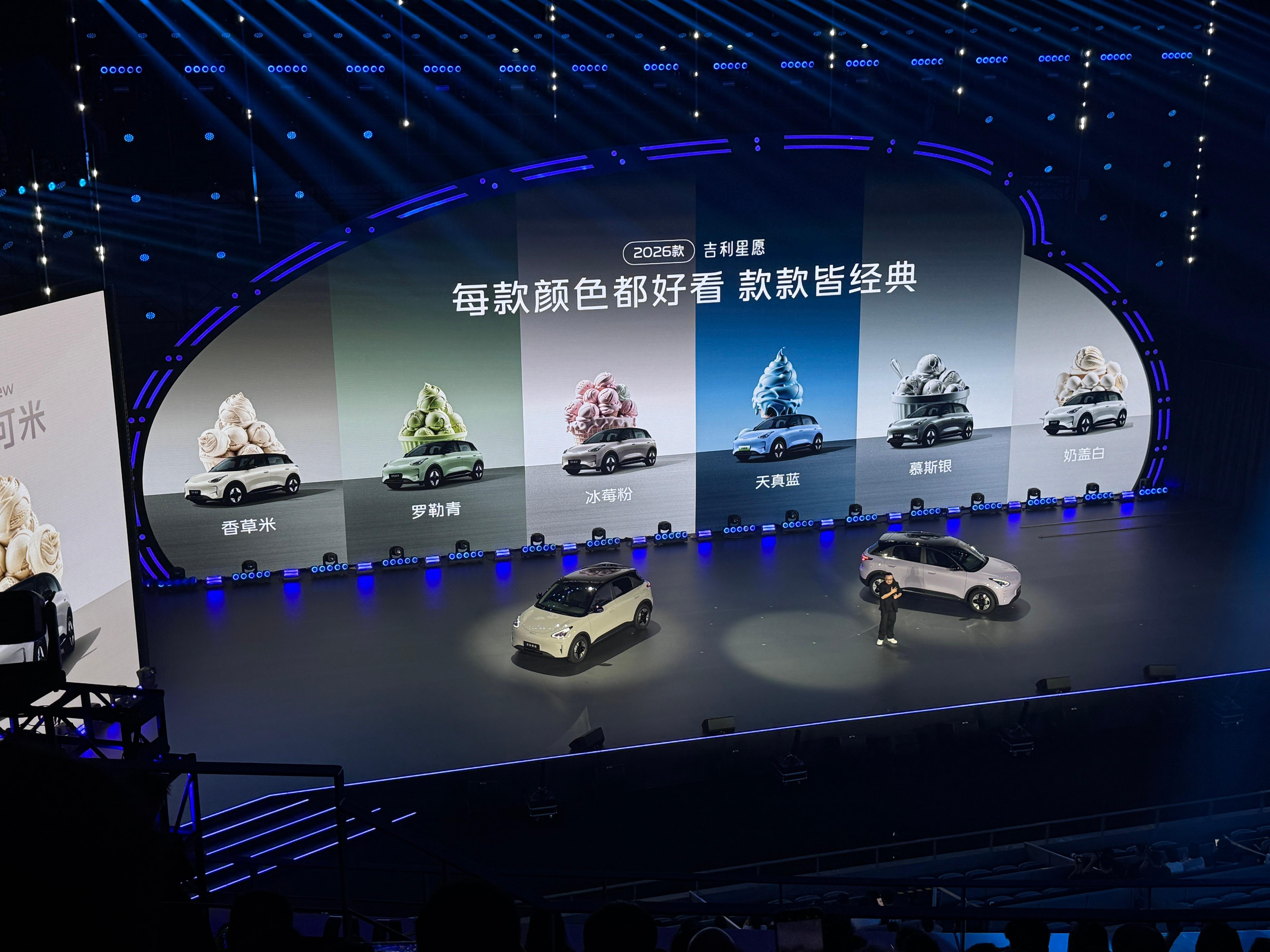 2、配色方面,2026款星愿新增可可米、香颂紫两种车身配色,配合原有的香草米、罗勒青等共八种选择,满足消费者多元化的审美偏好;