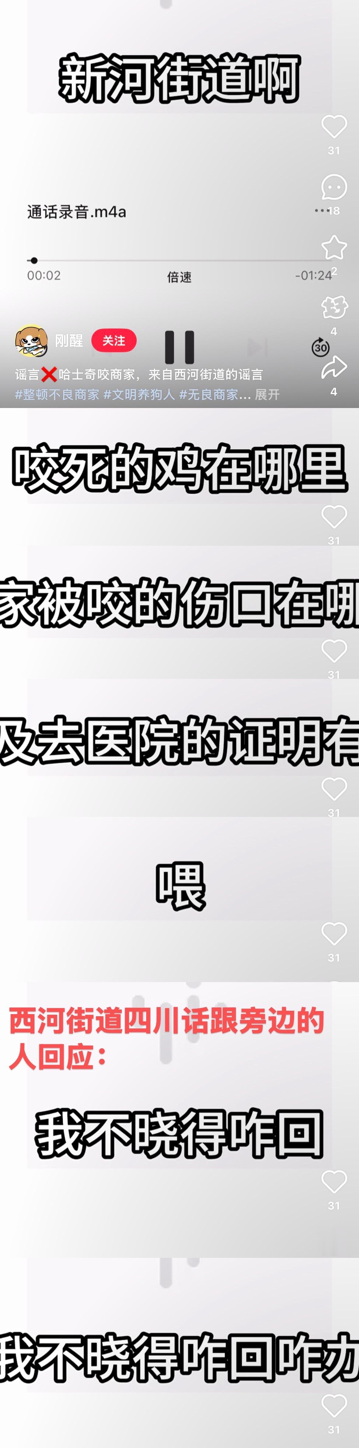 而网友给陈述上述“咬鸡咬人”的西河街道办打电话确认事件经过,要街道办提供被咬死的鸡的照片和店主医院伤情鉴定。而街道办的回应是跟旁边的人说:咋办,我不知道咋回复。