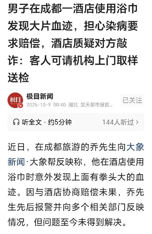 10月2日,乔先生和同行人在成都的一家酒店入住。在经过长时间的旅行后,他们疲惫不堪,急于休息。然而,乔先生在洗完澡后发现,自己使用的浴巾上竟然有一块明显的血迹。这一发现让乔先生感到十分不安,尤其是他担心可能感染上某些疾病。 于是,乔先生迅速通知酒店前台,并前往医院进行了一系列检测,尽管检测结果暂时无异常,但医生提醒他病症可能存在窗口期,需要后续多次检测。此时,乔先生要求酒店进行更进一步的调查,了解浴巾上的血液是否与他或同行人的血液相关,是否含有任何传染性病毒,并要求酒店承担相应的责任。 酒店方面则表示,浴巾的血迹可能是新鲜的,而酒店的清洁流程没有问题。酒店只同意退还乔先生当晚的房费,并拒绝了他要求赔偿的要求,称其疑似敲诈行为。此事经过调解后,尚未得到完全解决。 根据《民法典》第1198条,宾馆等公共场所的经营者负有对顾客的安全保障责任。对于酒店来说,它不仅需要提供一个清洁、安全的住宿环境,还应当确保顾客使用的物品(如浴巾、床单、毛巾等)是符合卫生标准的。 在本案中,乔先生使用的浴巾上发现血迹,这一行为直接涉及到酒店是否履行了基本的安全保障义务。浴巾作为酒店清洁用品的一部分,应当经过严格的消毒和检查。如果血迹是由酒店清洁人员未能完全清洗或检查所导致,酒店应当承担相应的法律责任。 根据《消费者权益保护法》第55条第1款的规定,如果经营者在提供商品或服务过程中存在欺诈行为,消费者有权要求赔偿,并且赔偿金额可达到消费者支付的费用的三倍。乔先生发现浴巾上有血迹时,酒店应当迅速采取行动,了解情况并向乔先生提供充分的解释与补救措施。然而,酒店仅仅退还了当晚的房费,这显然未能有效解决问题,也未充分考虑到乔先生的健康安全问题。 如果血迹属于未清洗干净的血液,且无法证明酒店的清洁流程符合卫生标准,酒店便可能构成欺诈,乔先生有权要求更多的赔偿,包括医疗费用和因感染潜在风险而导致的后续费用。根据法律,酒店的过失行为使得乔先生面临感染风险,因此,乔先生完全有权要求赔偿,甚至可能要求“退一赔三”作为惩罚性赔偿。 在这起事件中,血迹的来源是一个关键问题。如果浴巾上的血液属于乔先生或同行人,且经过检测确认没有病毒感染,酒店责任的划分可能有所不同。如果血液并非乔先生的,而是之前住客遗留下的,那么酒店在清洁时未能及时发现并处理这一问题,依然会对其造成的潜在健康威胁承担责任。 对于血液的检测问题,虽然酒店建议乔先生自行承担检测费用并自行处理,但这在法律上是不合理的。如果乔先生的健康受到影响,酒店应当承担全部责任,包括后续的健康监测和治疗费用。为了保障乔先生的权益,酒店应该主动协助并承担所有必要的费用,而非推卸责任。 酒店方面对乔先生的反应表现出强烈的怀疑,认为他是在敲诈。这种怀疑反映了酒店对事件的处理不当,但根据目前法律规定,任何人在消费者权益受到侵害时,都有权采取合理措施维护自己的利益,包括寻求法律救济和要求适当的赔偿。酒店不能因为怀疑乔先生有不当行为就忽视其应当承担的责任。 事实上,酒店应当主动与乔先生沟通,并尽力了解血迹的来源以及可能带来的健康风险。单纯从财务利益的角度推测消费者动机,不仅会加剧矛盾,还可能导致更严重的法律后果。酒店拒绝合理赔偿和协助检测的行为,可能加大了法律责任。 关于感染风险,医生已明确告知乔先生存在窗口期,因此,乔先生的健康依然存在隐患。基于这一点,酒店必须对由其过失引发的健康风险承担责任。《消费者权益保护法》第55条对“欺诈行为”的赔偿规定,可以适用于此情形。如果乔先生后续感染疾病,酒店应当承担相应的医疗费用和其他赔偿责任。 本案中,酒店未能尽到必要的安全保障义务,导致消费者面临健康风险。根据《民法典》和《消费者权益保护法》的相关规定,酒店应当对由其过失造成的损害负责,承担适当的赔偿责任。乔先生完全有权要求酒店承担更多责任,尤其是医疗费用和相关赔偿。 同时,这一事件也提醒了消费者在享受服务时应当关注自己的权益,并且在面对服务质量问题时采取积极的法律措施维护自己的利益。酒店方应当更加重视消费者的安全和权益,在发生类似事件时主动采取措施解决问题,而不是通过怀疑消费者动机来推卸责任。对于酒店行业来说,这一事件也是对其内部管理和服务流程的一次深刻警示,保障消费者安全,提升服务质量,才能赢得更广泛的信任和口碑。
