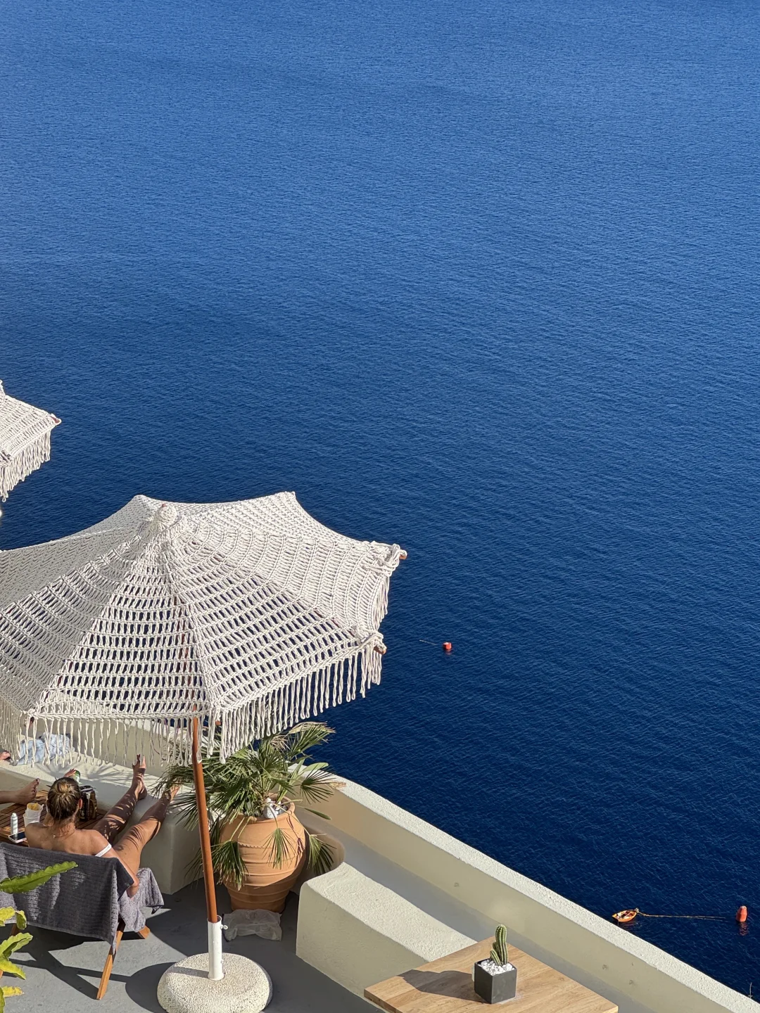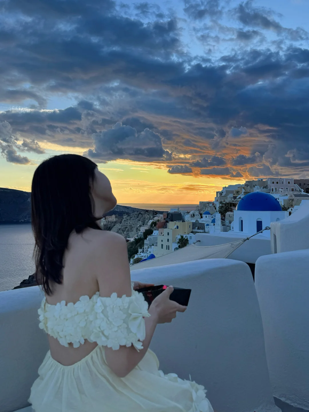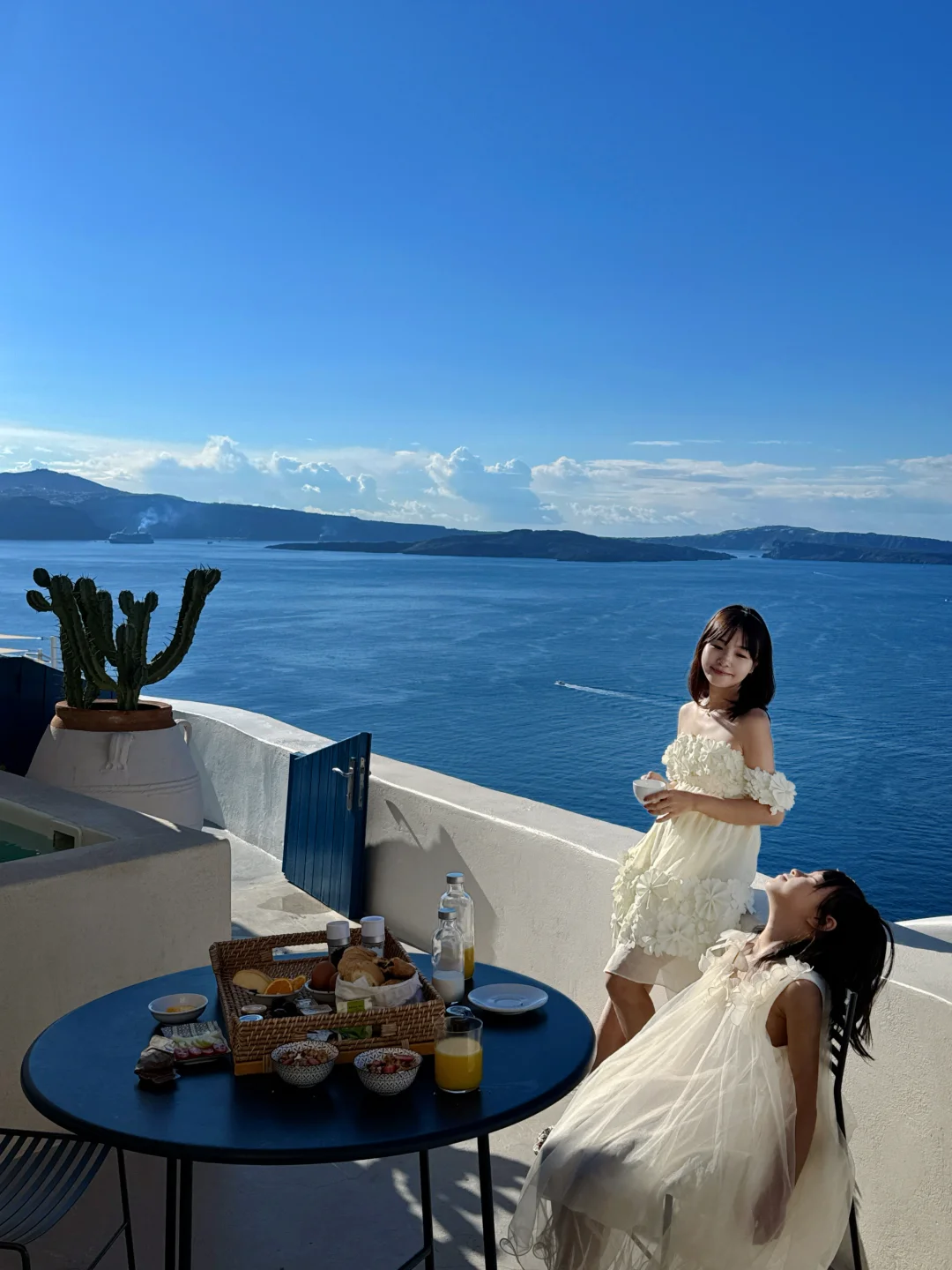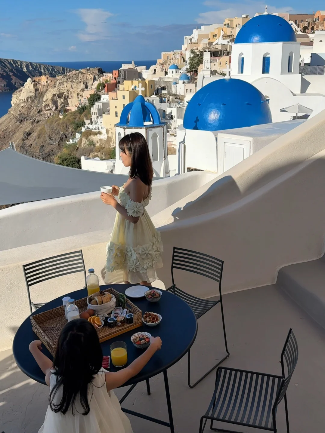 每天以蓝顶教堂为背景。伴着爱琴海的美景吃早餐,在自己的屋顶看日落,真的太幸福了!
