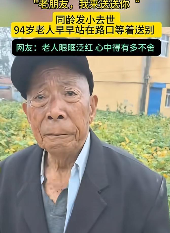 94岁老人穿西装路边送别发小,沉默泪目无人搀扶,谁还记得他们那代人的青春? 江苏有个九十四岁的老人,最近被人拍到站在路边,穿着年轻时的西装,等着一队出殡的人走过,那是他七十多年的朋友,刚走,他没上前,也没说话,就那么看着,眼泪在眼里转,没掉下来。 他站得笔直,没人扶,也不是没人关心,是他不想麻烦别人,他穿着那身西装,不是为了凑热闹,是为了送走一个和他一起长大的人,那件衣服,是他年轻时候的样子,现在他穿着年轻时候的样子,送走另一个年轻时候的人。 现在很多人拍短视频,老人们也爱直播,可这位老人不一样,他不拍,也不喊,就站在那儿,他的悲伤不给镜头看,也不需要点赞,他的哀悼是安静的,是他自己的。 有人觉得人活久了走掉是好事,叫喜丧,可老人心里头空落落的,不是怕死,是怕再没人记得他小时候的事了,2024年有个调查说,七十五岁以上的,六成以上身边连五个同龄人都没有,四成的人说,早就没人能和他们说说小时候了。 上海有个网友说,他爸看了这个视频就哭了,不是因为难过,是没人知道他从哪儿来,走过哪些路,吃过多少苦,安徽有个爷爷,朋友走了以后,他也不吃饭,也不说话,不是想死,是心里空了,世界就剩他一个,回忆成了他能抓得住的唯一东西,可没人愿意听他说。 抖音上有个话题叫“爷爷的旧照片”,播放量超过十亿,年轻人爱看那些泛黄的老照片,觉得有滋味,可没人问,这些照片背后的故事是谁讲的,那些没被拍下来、没被记下来的事,正一点点没了。 国家说要关心老人的精神生活,可实际呢,社区里就管吃饭、看病、洗澡,没人组织老人坐一块儿说说话,也没人帮他们找找老朋友,日本那边有同年代会,一群年纪相仿的人定期见个面,聊聊过去的事,我们这儿几乎就没有这样的事。 这老人不是在送葬,是在跟整个时代说再见,他和发小的那些事,没被手机拍过,也没被平台推过,那些记忆不刷屏,也不爆火,可它们真真切切地存在过。 我们看视频时会哭,可真正让人揪心的是,下一个站在路边默默送别的人,会不会是家里的长辈,会不会有一天,我们也变成这样。 你今天能不能给家里老人打个电话,问问他们还记得小时候的事不,别等他们走了才想起没多听几句,他们的故事,是咱们这代人快忘了的东西,你不说,没人会替他们记住。