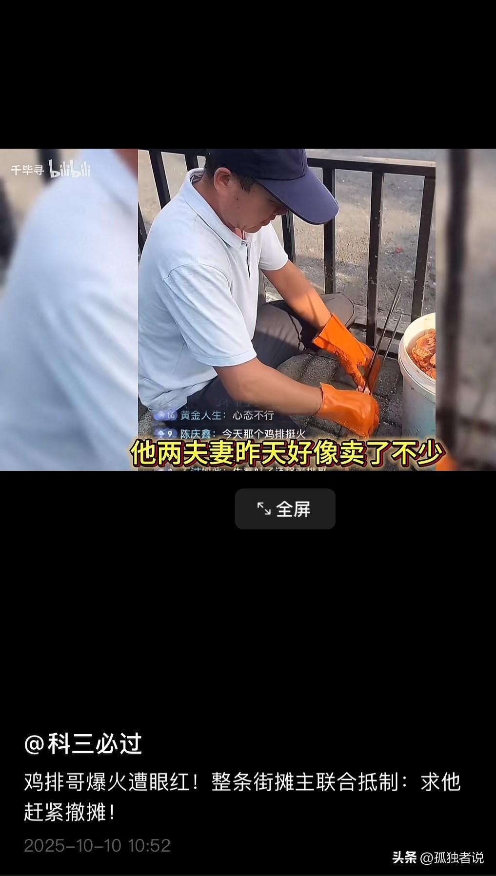 鸡排哥和卤鹅哥最大的不同就是,鸡排哥把流量和生意分给了家人,卤鹅哥把流量分享给了荣昌所有的小商贩,包括所有卖卤鹅的,让他们都赚到钱了! 今天刷到一个视频,一个博主采访跟鸡排哥一条街摆摊的,问他对鸡排哥爆火有什么感受。这位摊主表示希望鸡排哥搬走,他生意跟以前差不多,但是由于排队的太多了,他每天都要早起出来占摊位,搞得很累! 真的别再吹捧鸡排哥了,他只是一个会点心灵鸡汤的小贩罢了,这样能说会道的在东北估计满条街都是,还更能带来情绪价值。鸡排哥爆火后,他让自己所有的亲戚开了大概9-10分摊位,在不同的地方。 可是,跟他一条街摆摊的小商贩也是一群为了生活奔波的人,他们就算也卖鸡排又怎么样,难道他们的鸡排就不如鸡排哥的鸡排!都是一样的货,一样的味道,能有什么区别! 真的别再炒作了,一个卖鸡排的都能被捧成小公知,有点离谱了!他影响的不仅是周围的小商贩,更是整个社会的价值观,让那些孩子觉得读书没用,卖个鸡排也能成为网红,也能实现财富自由,有点乱了! 每一个努力的人都值得尊重,给别人一点活路,自己才能走的更远。可是,到目前为止,除了假惺惺的几句为当地文旅宣传的场面话,好像鸡排哥从来没提过周边的小商贩,顺手的一点宣传有那么难嘛!