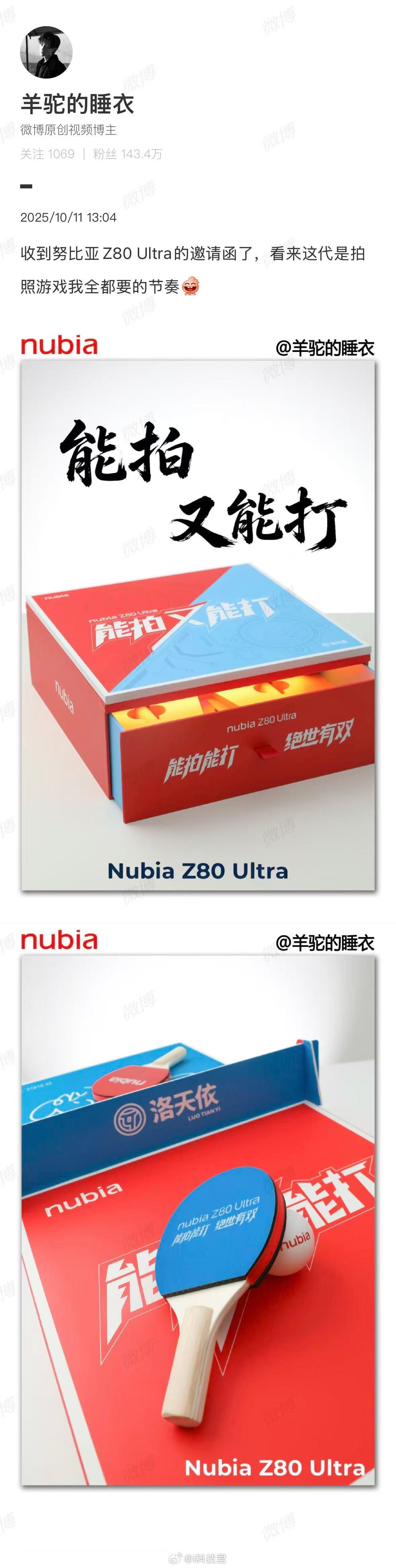 要不说人家努比亚格局大,有境界呢,羊驼之前制作视频玩梗并没有让努比亚生气,反而很大气的给他送去发布会邀请函!欢迎羊驼玩梗是吧?那估计网友都可以随便玩玩了,另外努比亚Z80 Ultra这手机算是比较有个性化的新物种,可扫街可电竞的,看着配置就相当稳了。发布会直播一定看看,已经定好闹钟了[doge]