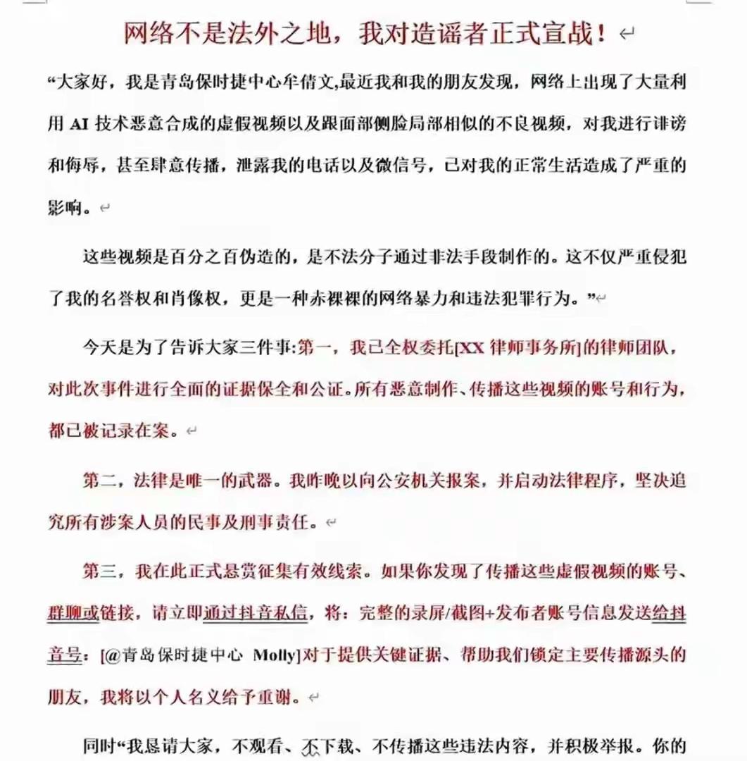 被造黄谣了! 被人用AI技术伪造不雅视频发到境外色情网站上了! 青岛保时捷女