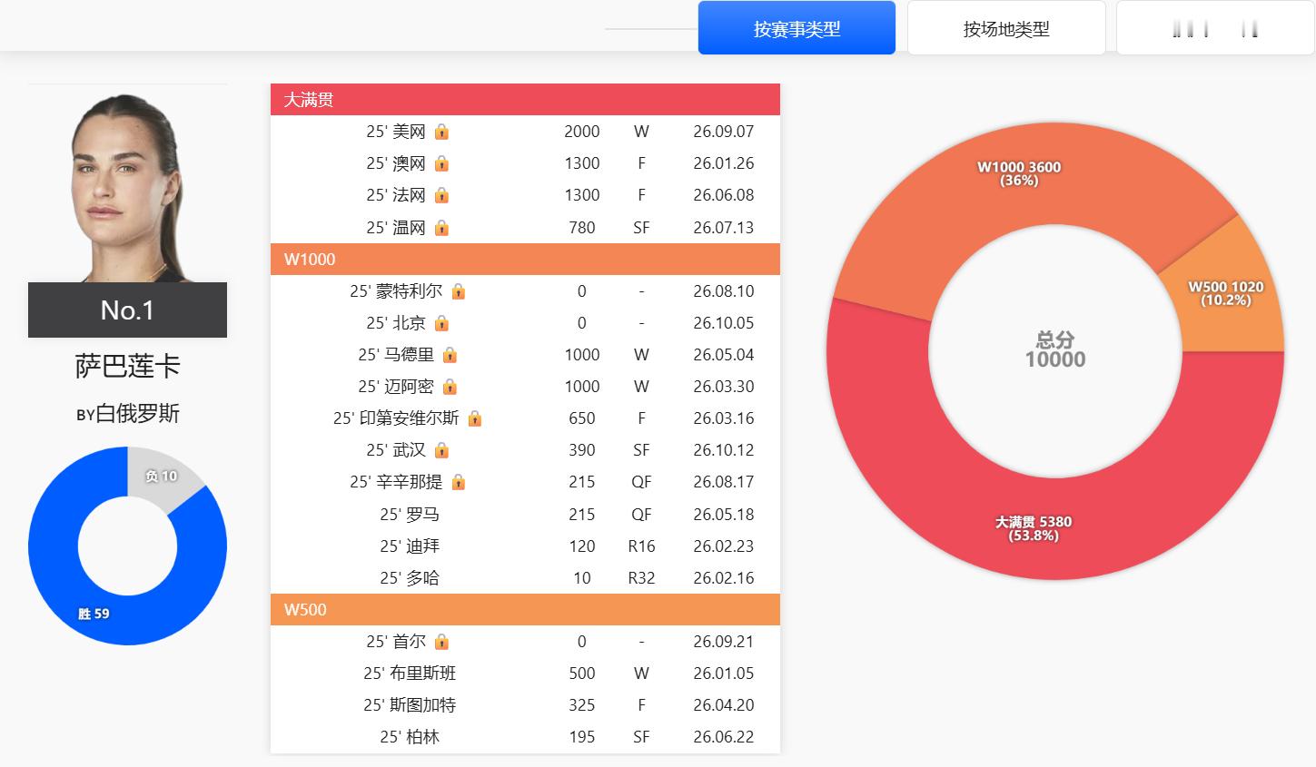 此时此刻萨巴伦卡赛季冠军积分刚好10000分[捂嘴哭]