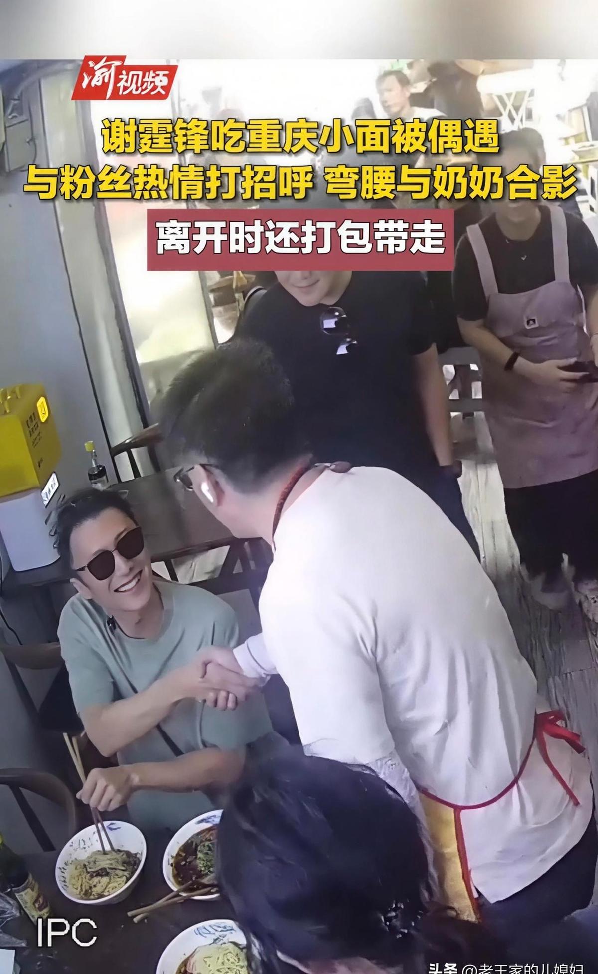 他蹲下来问:“婆婆,能合个影吗? ” 88岁的李婆婆笑了:“你长得这么乖,当然可以。 ” 没人安排,没带助理,三碗面自己吃,两份打包给经纪人当宵夜。 不是演,是真饿了。 《锋味》拍的是小面,他拍的是人。 不包场,不清场,和老头老太太挤一张桌,筷子碰碗,热气腾腾。 重庆的面馆,从来不认明星。 但谢霆锋,认这口热乎的烟火气。 演唱会票45秒抢光,小面团购卖了七万多份。 没人逼他,是他自己把镜头让给了李婆婆。 文旅官微发了合影,配文:欢迎再来。 他没说“谢谢”,但给李婆婆留了第一排。 不是热搜在捧他。 是他,把热搜,变成了人间真实。