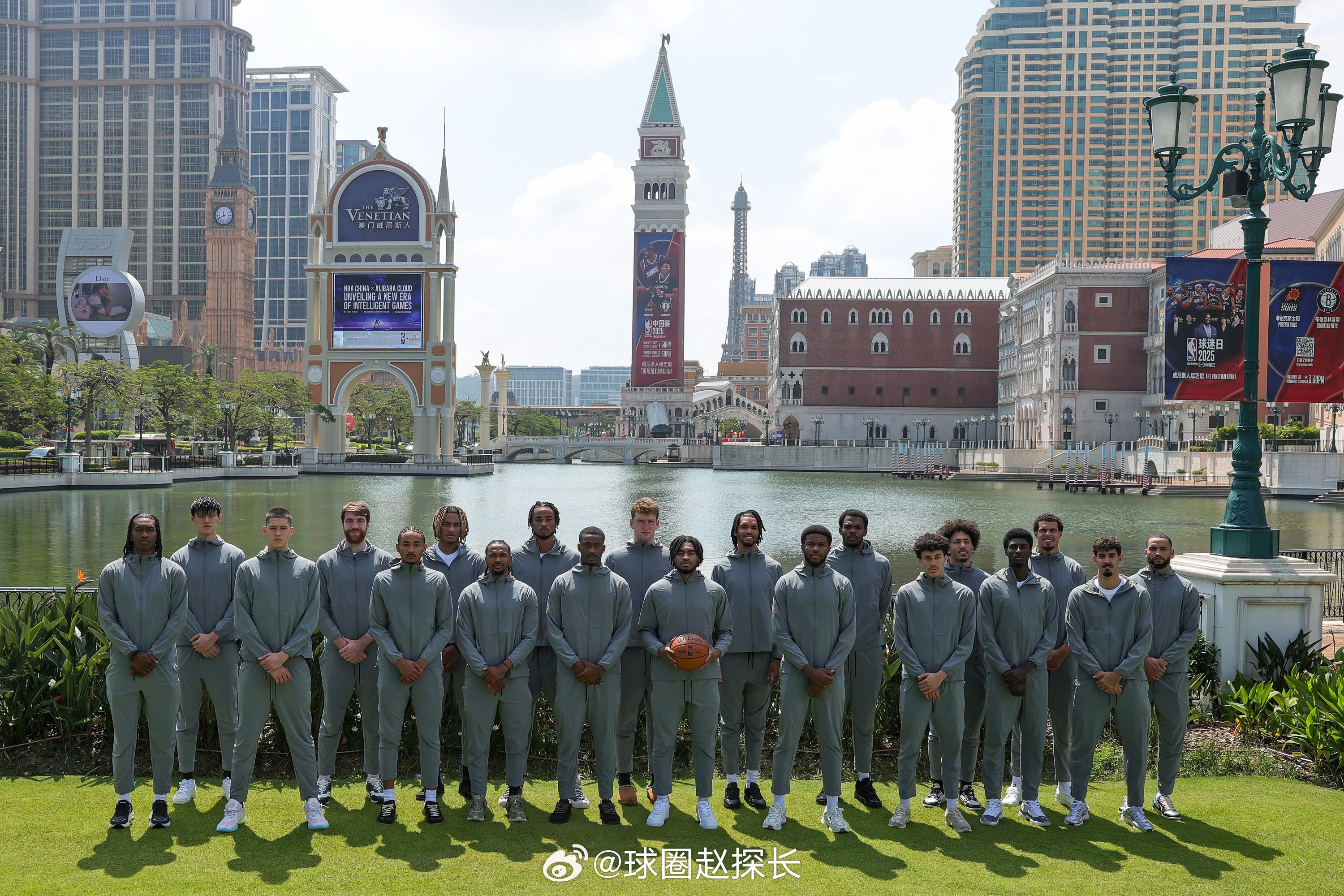 布鲁克林篮网队在威尼斯人前大合影👇今天是球迷日活动,没有比赛,跟太阳队的第二
