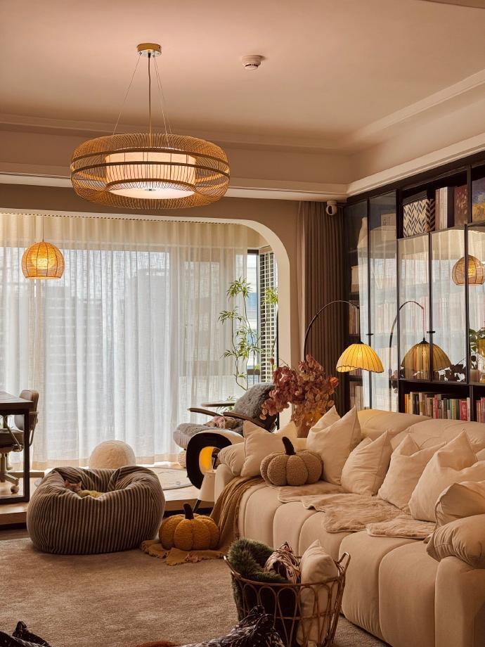 现代简约风客厅真的太绝了!就像我之前看到的一个案例,客厅有一扇超大的落地窗,自然