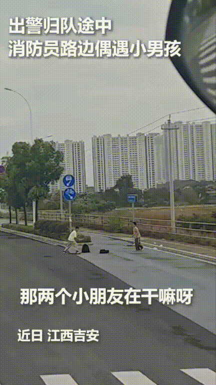 这两个小孩火到人民日报了!江西吉安,出警归队的消防员在路上看到俩小孩撅着屁股蹲在