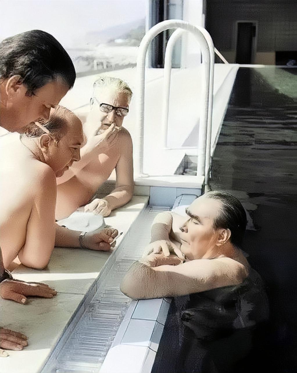 1977年,勃列日涅夫正在游泳。突然,他的烟瘾又犯了。3名警卫赶紧点上香烟,勃列日涅夫则趴在泳池边上,张大鼻孔把烟雾充分吸入,表情如痴如醉。 勃列日涅夫1906年出生在乌克兰一个工业小镇,父亲是钢铁工人,他从小就熟悉工厂生活。年轻时学冶金技术,当上技术员后1931年加入苏联共产党。那时候他就开始在党内做事,积累经验。二战爆发,他当上军队政治委员,在南方战线干活,升到少将,还负责部队思想工作。战后他去乌克兰帮忙恢复工业,后来调到摩尔多瓦管农业和工厂。1950年代初,他去哈萨克斯坦搞农业开发,成绩不错。1957年支持赫鲁晓夫处理党内问题,从那以后升得快,1960年当上最高苏维埃主席团主席。1964年10月,他接替赫鲁晓夫,当上苏联共产党中央委员会第一书记,从此领导苏联18年。 在领导期间,勃列日涅夫推动外交,跟西方国家谈缓和。1972年他见美国总统尼克松,签了限制战略武器条约。1977年他还兼任最高苏维埃主席团主席,继续管国家大事。他注重经济发展,投钱到军工和重工业。苏联在那时候太空探索有进展,发射了不少卫星。他也参加国际会议,促进社会主义国家合作。早年他抽烟抽得凶,几十年烟龄,身体开始出问题。1970年代中风发作后,医生让他戒烟,他试着戒,但瘾大,很难彻底断。 勃列日涅夫还有个习惯,就是跟社会主义国家领导人见面时用拥吻表达友谊。这源于俄罗斯传统,本来是亲右脸、左脸、再右脸,最后轻触嘴唇。但他改了方式,双手按住对方脑袋,两边脸颊各亲一下,然后激烈亲嘴唇。执政18年里,好多领导人被他这样亲过,根据关系亲密程度,力度不一样。南斯拉夫领导人铁托被亲时嘴皮都伤了。1968年捷克领导人见他,被亲得烦,第二次见面故意举朵花挡胸前,避免被亲。苏共政治局委员们天天见他,时不时就被亲一下。 1974年11月,勃列日涅夫在符拉迪沃斯托克跟美国总统福特谈事。谈着谈着,他脸部扭曲,说话不清楚。苏方赶紧停下会谈,送他去检查。医生查出是中风,因为他烟瘾重,建议戒烟保健康。他决定戒烟,但几十年瘾头,过程难熬。为了减轻发作痛苦,他让别人抽烟,自己闻烟味缓解。在一次会见外宾的会议室里,烟瘾上来,他让外宾点烟,自己凑近闻味。1977年夏天,他在莫斯科郊外私人泳池游水时,烟瘾又发。他游到池边,3名警卫在草坪上拿出烟,用打火机点着,烟雾飘起。他们把烟举到池边,他趴在那,张鼻孔吸烟雾,脸部表情变了。 这种闻烟方式成了他戒烟期的常态。在办公室或休息室,他也这么干。警卫和工作人员配合,提供烟雾。他的健康管理有定期检查,但烟瘾控制还靠这些办法。戒烟后,他对药片依赖增加,吃得更多。医生限他抽烟,他有时公开场合还抽,但医生担心他心血管问题。高血压和心脏毛病让他身体弱。1975年或1976年,他中风更严重,一度临床死亡,但急救救回来。从那以后,他行动不便,但还坚持工作。 勃列日涅夫晚年中风多次,身体机能降得快。1976年初,在医疗中心出大问题,医生说临床死亡,但抢救过来。他继续干最高领导人,尽管不适合。1970年代末,走路要人扶。在克里姆林宫开会,他坐椅子上,说话慢。医疗队加药控制,但他出席活动。1980年莫斯科奥运会开幕,他站台上挥手。1982年秋,在莫斯科郊外别墅休息。11月9日晚胸痛,工作人员叫医生。次日早8时30分,他床上没呼吸。医生到场,确认心脏骤停死亡。苏联中央委员会发公告,说他去世。 去世后,遗体运到莫斯科红场。全国哀悼三天,11月15日国葬,灵柩放列宁墓前平台。各国领导人来,仪仗队鸣枪。葬礼队伍走街,他的棺木盖国旗。埋在克里姆林宫墙下墓地,结束领导生涯。他执政期,苏联经济有停滞迹象,官僚体制问题多,但他还是干到死。健康衰退从1970年代中开始,中风和烟瘾加重负担。戒烟尝试没完全成功,闻烟方式是权宜之计。 勃列日涅夫领导下,苏联对外政策有变化,跟美国谈限制武器,缓和冷战。但国内,军工投资大,经济结构不平衡。他收集勋章的爱好有名,胸前总挂一堆。亲吻习惯让很多人尴尬,但这是他表达方式。健康问题瞒不住,1974年福特会谈就露馅。医生多次提醒,他试着控制,但老习惯难改。晚年依赖药片,睡眠和镇静药吃多,加重心力衰竭。1982年死时76岁,执政18年是苏联史上长的一段。