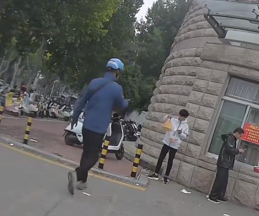 学校门口惊现外卖刺客,外卖小哥蹲守抓现行,原来是一白衣服男生所为。因为被偷了多次,外卖小哥损失惨重,这一次外卖小哥送外卖过来后,给顾客打电话,是个女生接的。过一会,一个男生把外卖拿走,同时还拿了其他人的,外卖小哥果断出手,过去质问男生,手机尾号是多少,男生马上露馅了。外卖小哥把男生交给学校保安处理。这时应该报警才对。外卖员停车事件 外卖盗窃 校园外卖员