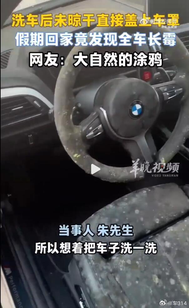 安徽一男子洗车未晒干致全车发霉宝马停1个月没开长满霉菌