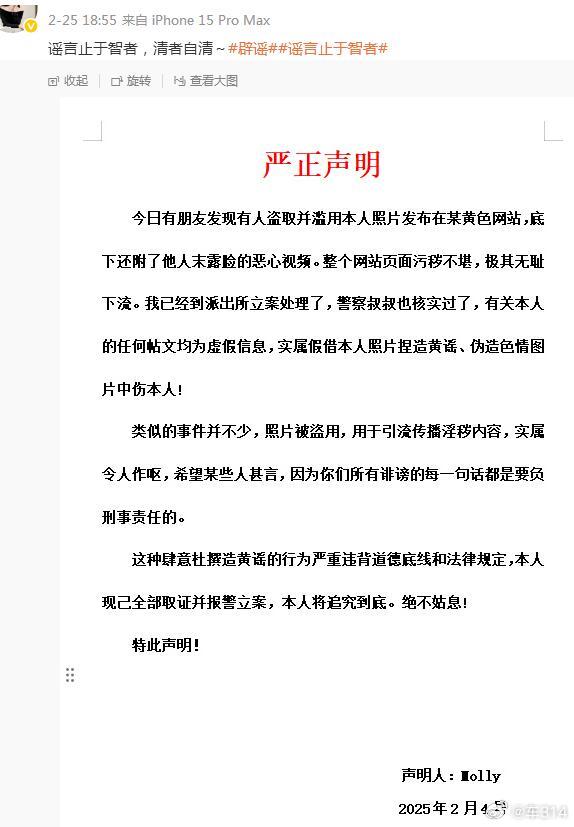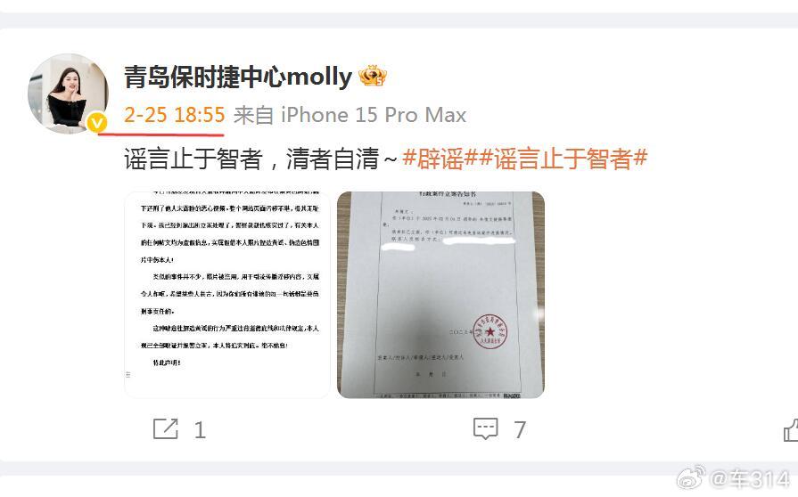 青岛保时捷销冠牟女士已经报警了,而且发文“对造谣者宣战”,估计这事儿是闹大了,不知道那些用她面部信息进行AI PS的人,会不会慌?其实早在今年2月份,她就已经发表过声明了,严厉斥责那些造黄谣的人。