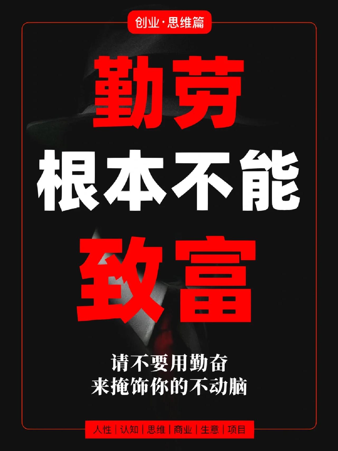 勤劳,根本致不了富! 你还信“勤劳致富”这碗鸡汤吗? 那我问你: 工地上的工人辛不辛苦? 田里的农民勤不勤劳? 他们富了吗? 致富靠的根本不是手脚勤快, 而是脑子勤快 你用体力赚钱, 一天最多24小时, 终有天花板。 人家用资源、用资本、用信息赚钱, 收入可以翻倍涨, 可以利滚利 这根本是两种游戏 埋头苦干? 你只是在给别人搭建致富的阶梯 你赚的是血汗钱, 别人赚的是你创造的价值差价 你的勤劳, 填满了谁的腰包? 别再自我感动了 勤劳,只是入场券, 绝不是登顶的通行证。 想要真的变富? 你的努力方向对了吗? 你是在重复劳动, 还是在创造不可替代的价值? 把手上的活放一放, 抬起头,看看路 让你的思维, 比你身体更勤快 这才是破局的关键