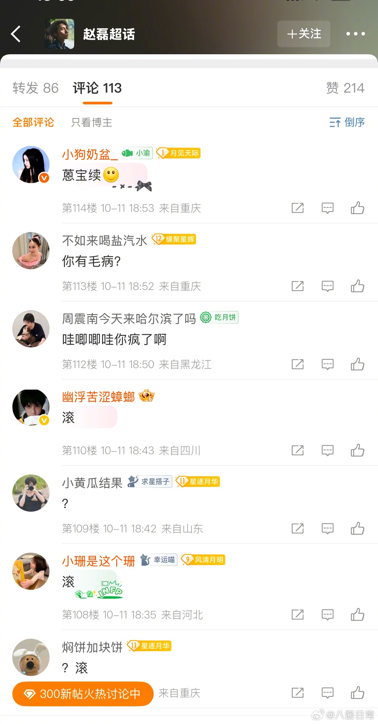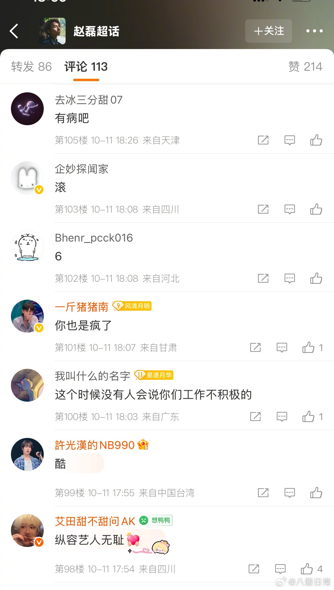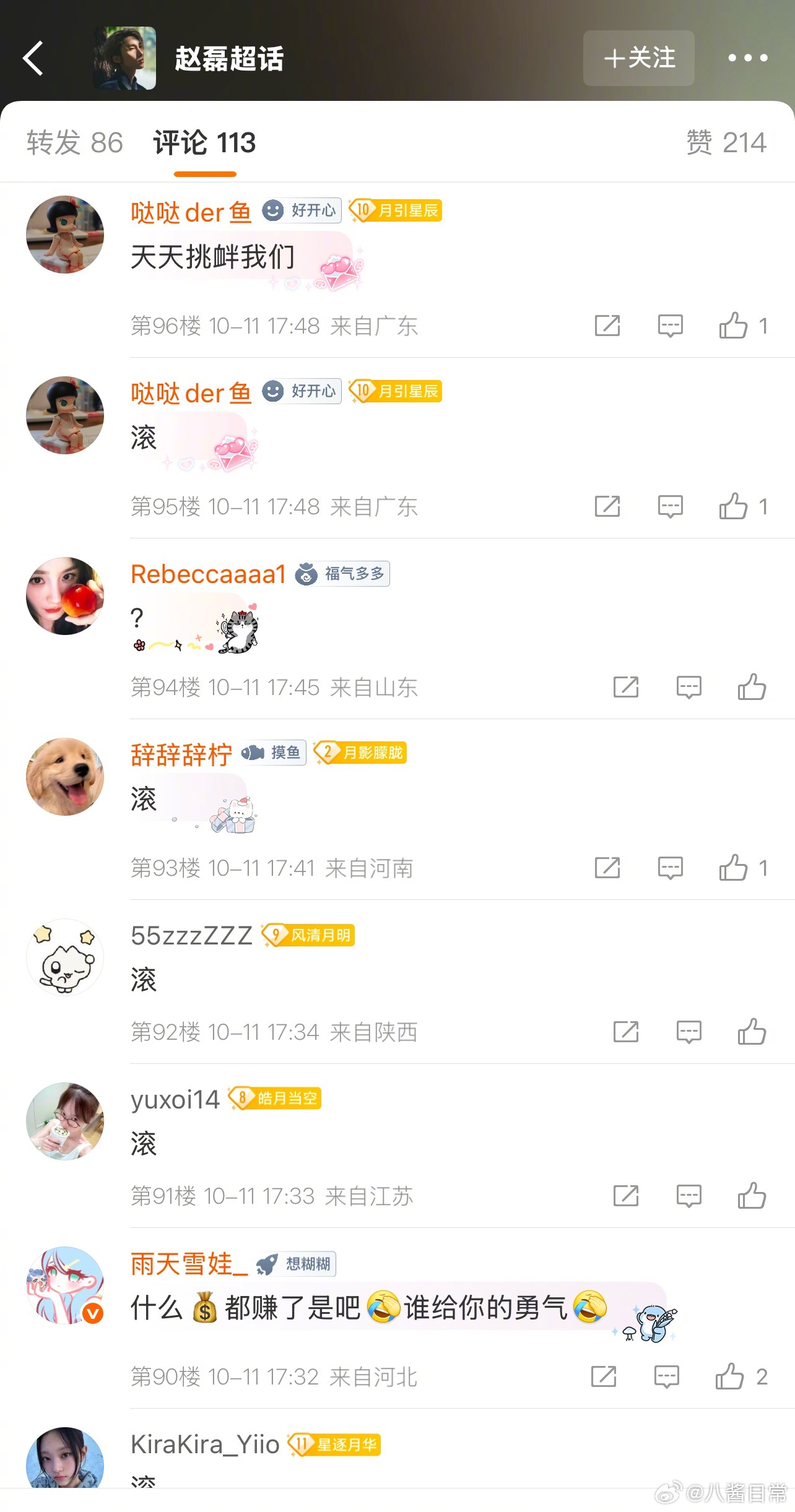 哇唧唧哇在赵磊个人超话发赵磊和qko,评论区全是骂的