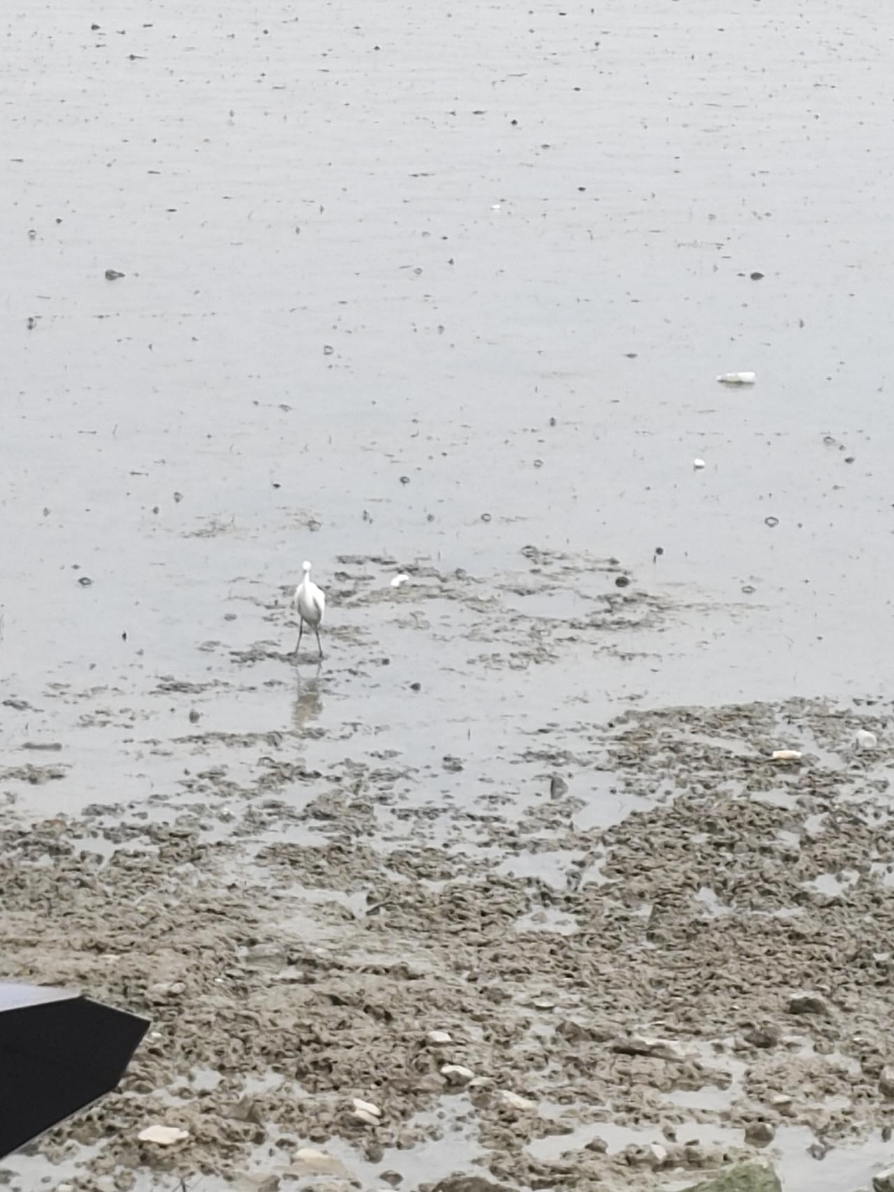 这白鹭也太会摸鱼了! 站泥潭里半天不动,是在等饭上门? 今天逛江边撞见个淡