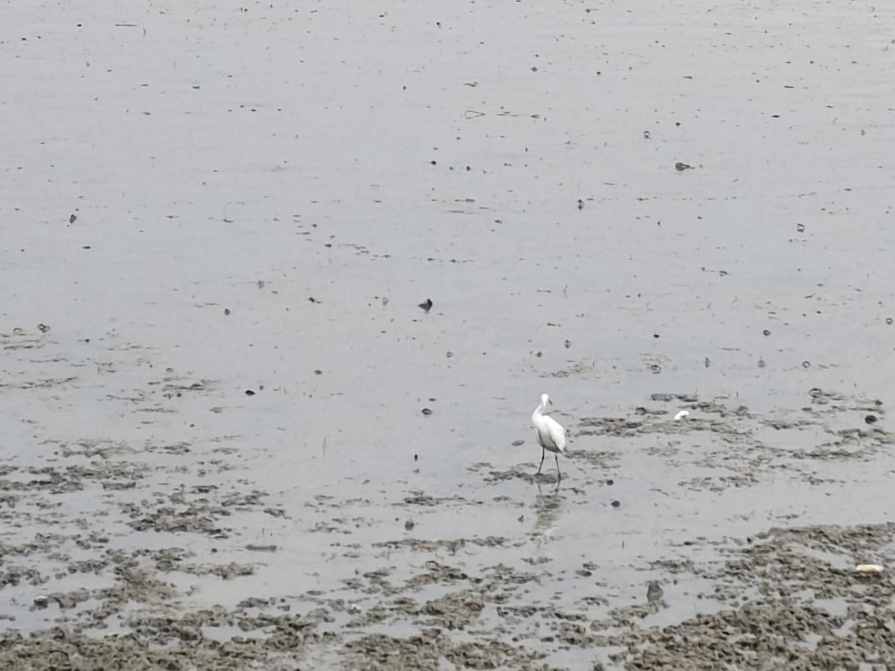 这白鹭也太会摸鱼了! 站泥潭里半天不动,是在等饭上门? 今天逛江边撞见个淡定哥——一只白鹭戳在浅滩泥潭里,跟定海神针似的,半天都不带挪窝的! 你看这滩涂,水混着泥,还有些碎水草,它倒好,长脚一扎,脑袋时不时转两下,也不知道是在瞅鱼还是在放空。 我蹲那儿看了十分钟,这货除了扇了下翅膀,愣是没动地方!合着这是守株待鱼呢?等小鱼小虾自己送上门? 不得不说这白鹭挺会选地方,浅滩里食物多,还不用费劲飞。就是这泥巴糊得脚脖子都脏了,它也不在乎,主打一个摆烂式干饭。