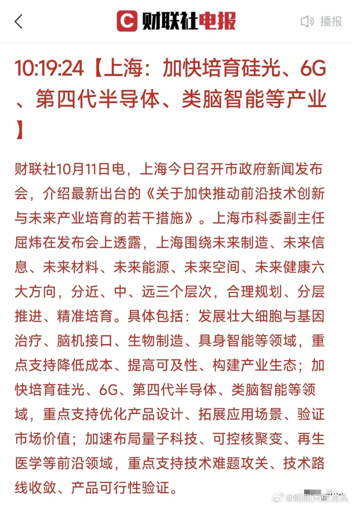 上海重磅宣布!一、上海此次出台的《关于加快推动前沿技术创新与未来产业培育的若干