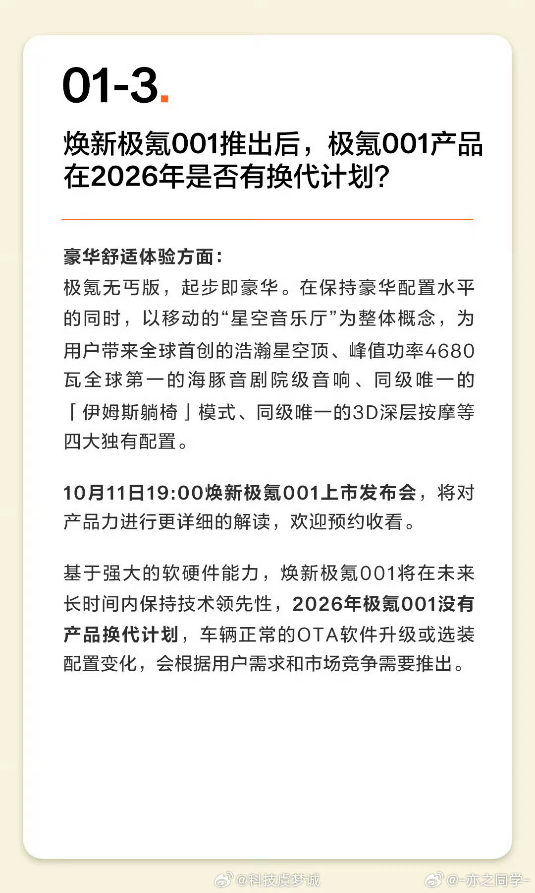 官方来给承诺了,26年001不会换代,各位新老车主可以放心买了