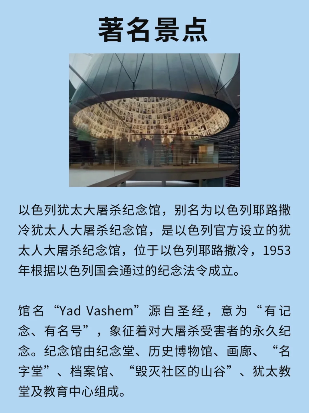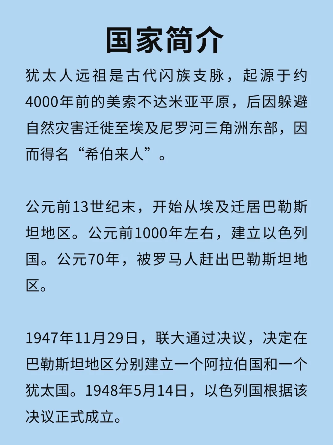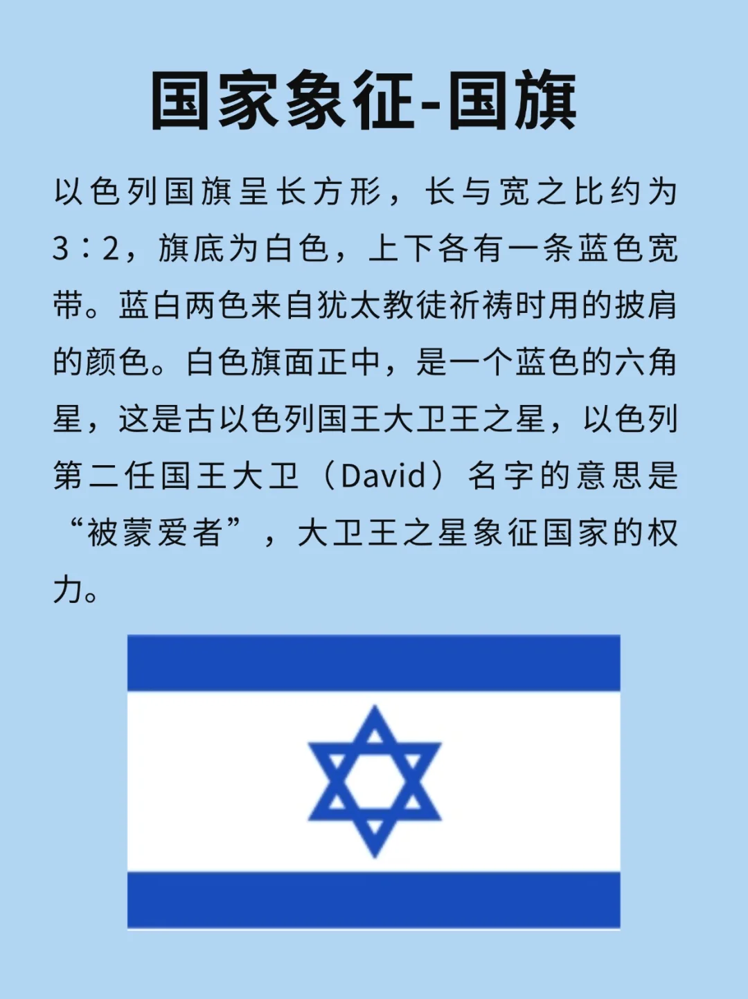 以色列,位于亚洲西部,东接约旦,东北部与叙利亚为邻,南连亚喀巴湾,西南部与埃及为邻,西濒地中海,北与黎巴嫩接壤,是亚、非、欧三大洲结合处。 以色列地中海沿岸为狭长的平原、中北部为蜿蜒起伏的山脉和高地、南部为内盖夫沙漠、东部为纵贯南北的约旦河谷和阿拉瓦谷地。 [打卡R]以色列的首都耶路撒冷,是以色列和巴勒斯坦共有的首都(双方都有争议)和政治、经济、文化和交通中心,是耶路撒冷区的首府,原巴勒斯坦最大的城市。 欢迎在评论区下方⬇️留言补充哦~ -