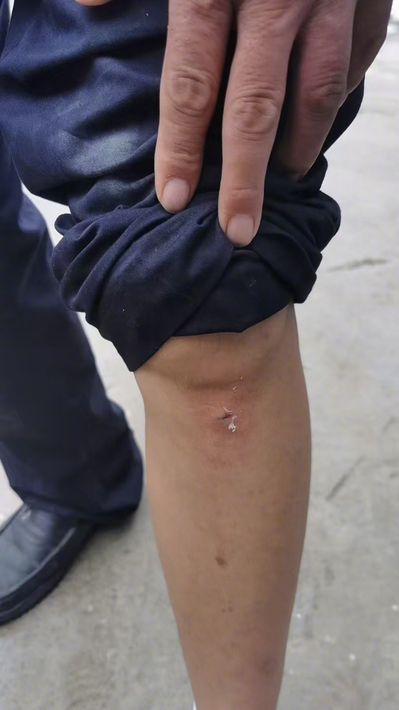井道狭窄,薛松的肩背不时与井壁发生磕碰,但下降的动作没有丝毫停滞。救援结束后才发现,薛松的膝盖和手都被井壁磕出了伤痕。