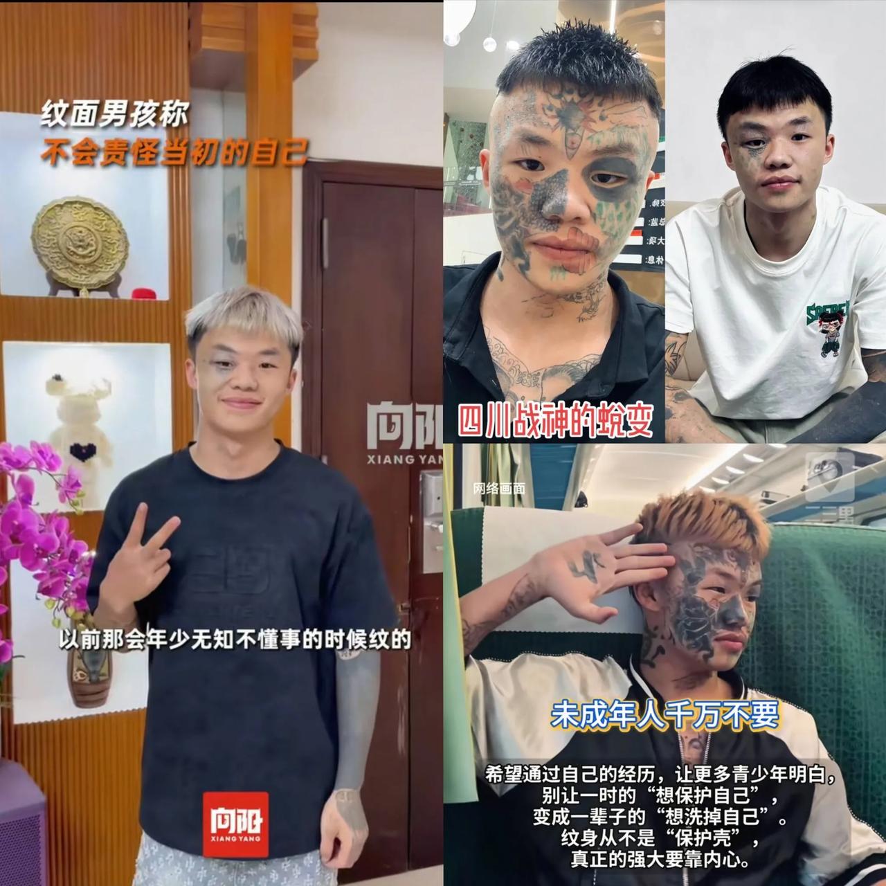 广东,纹面男孩夏朝勇为了洗掉年少时的纹身,已经做了三次激光清洗,还得再来两次才能彻底弄干净! 想想都疼,他说激光打在脸上就跟烟头烫似的。13岁时没了妈妈,总被欺负,听信纹身能唬住人的说法纹了面,结果这纹身成了他人生的绊脚石,办身份证、找工作都困难重重! 咱可得明白,别把纹身单纯当“酷”,它更像是给自己挖的坑。年轻时冲动纹上,日后得付出太多代价。真正能保护自己的,从不是脸上的图案,而是心里的底气和脑子的清醒! 大家身边有没有类似因为冲动后悔的事儿?要是能重来,你们觉得他们还会做一样的选择吗?