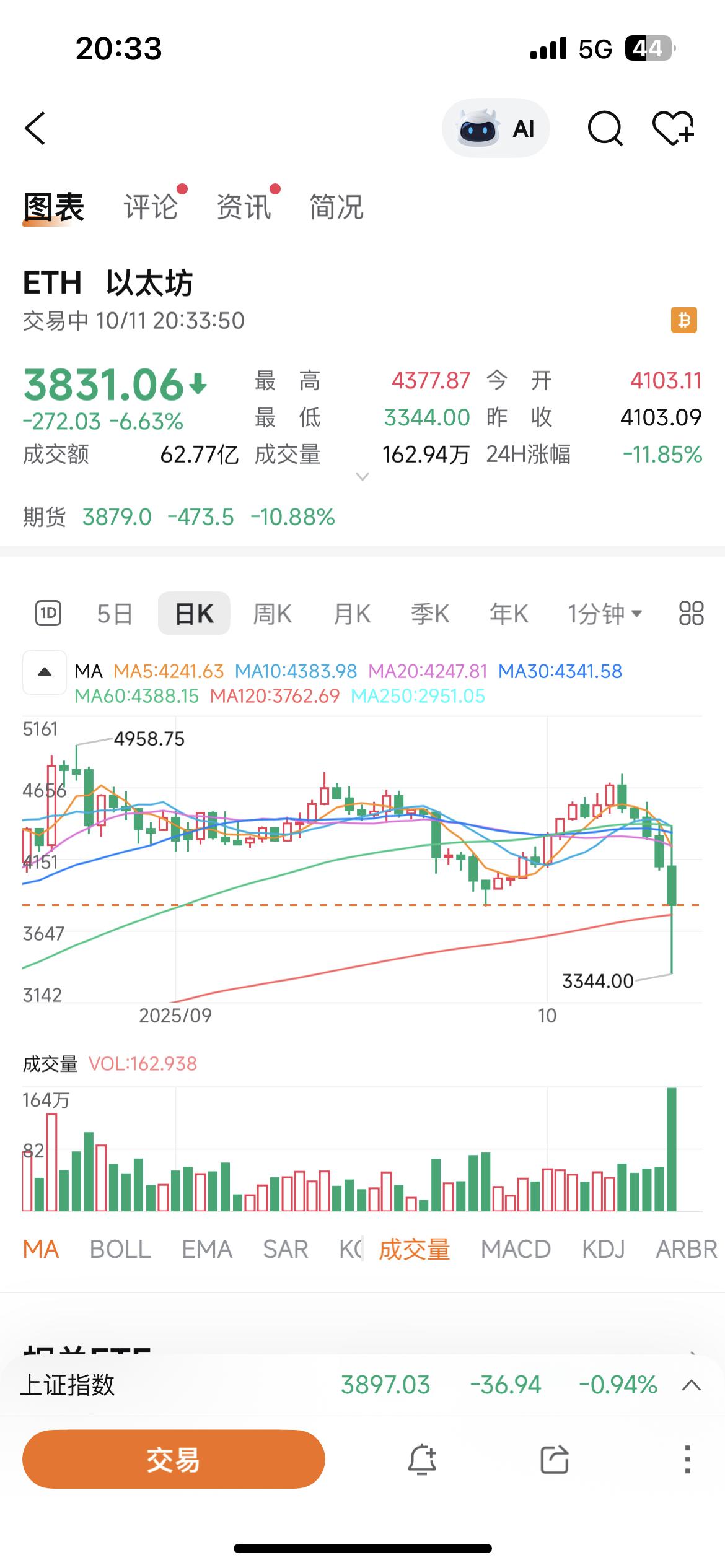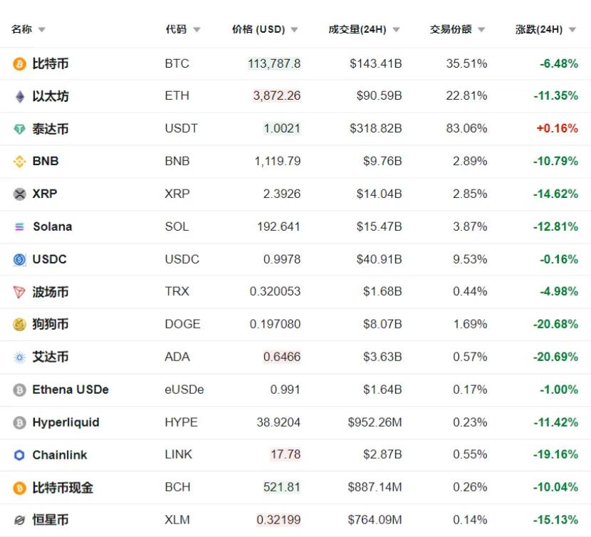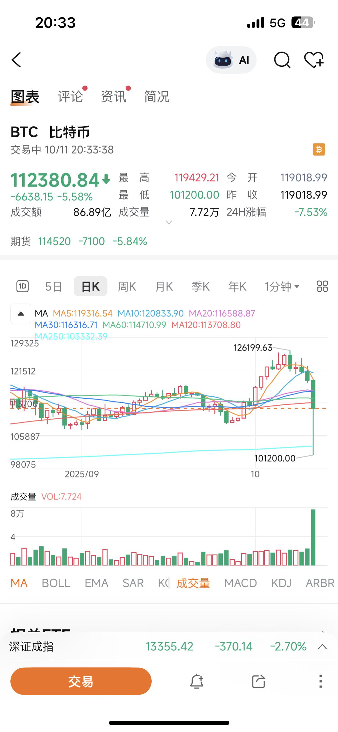 这次黑天鹅事件再次警示我们:普通人在投资中杠杆,完蛋是早晚的事…… 这次深夜黑天鹅事件中,和股市比起来,加密货币市场那才叫一个惨! 比特币盘中下跌超16%+,以太坊盘中下跌超20%+,其它很多山寨币跌30%-50%的比比皆是,很多不少直接清零的。 据coinglass数据显示,过去24小时内,加密货币全网合约爆仓超191.41亿美元,爆仓人数高达162万人。其中,多单爆仓166.86亿美元,空单爆仓24.55亿美元。 目前比特币再次回到112000+,以太坊也回到了3800+,但如果过程中爆仓了,即使收回了跌幅,你的钱也再回不来了。 真心希望大家投资中不要加杠杆,因为前面即使你赢了100次,但只要错1次,你就再也没有了机会。始终保持敬畏市场的心。