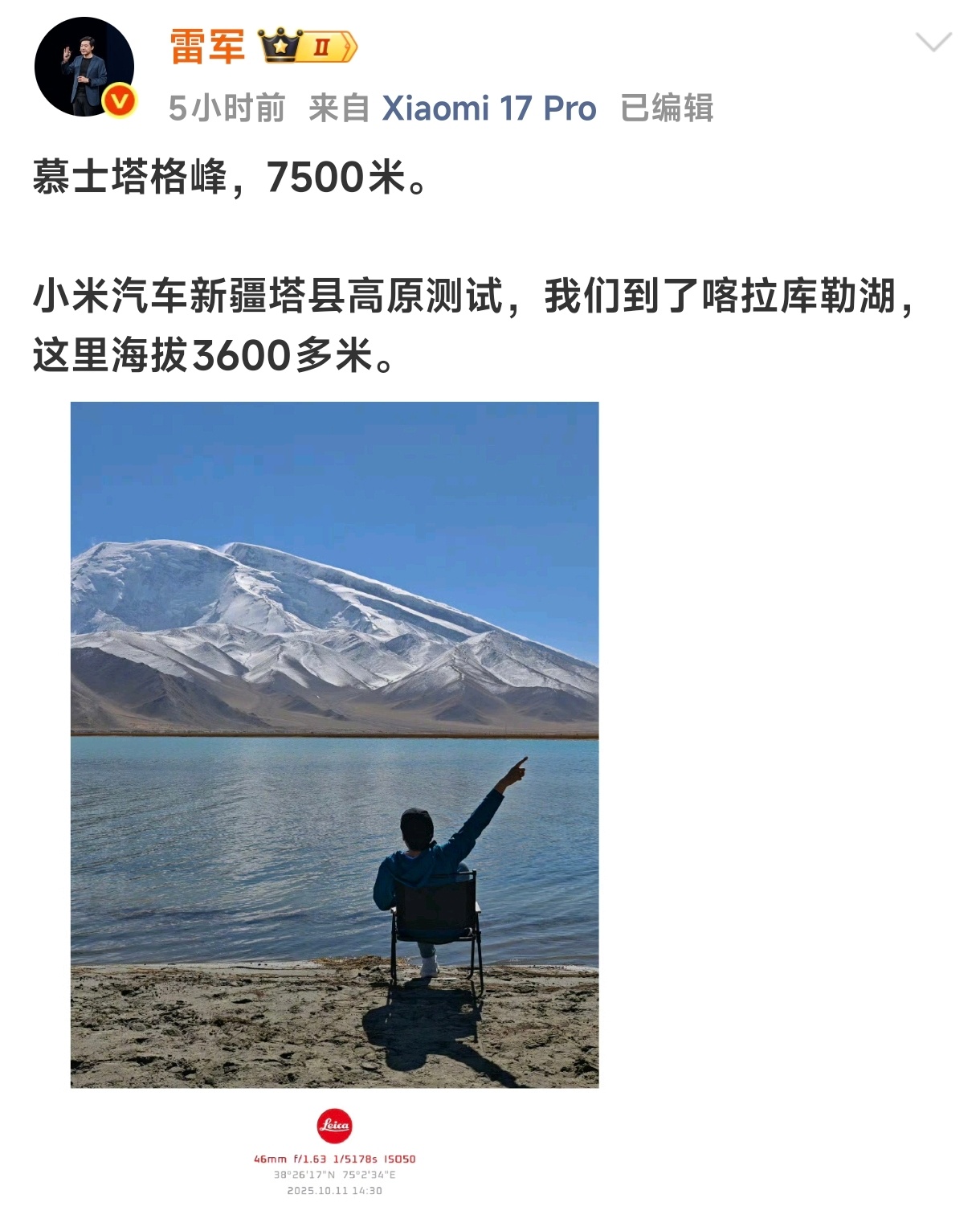 没想到 YU7 卖了这么久了,小米的路测团队居然还在测试,这次雷总还亲自带队去高原路测,要知道高原各种路况对于悬架和车内各种设施考验极大,对于造车这件事儿,小米真的拿出了十足的态度雷军带队高原测试YU7