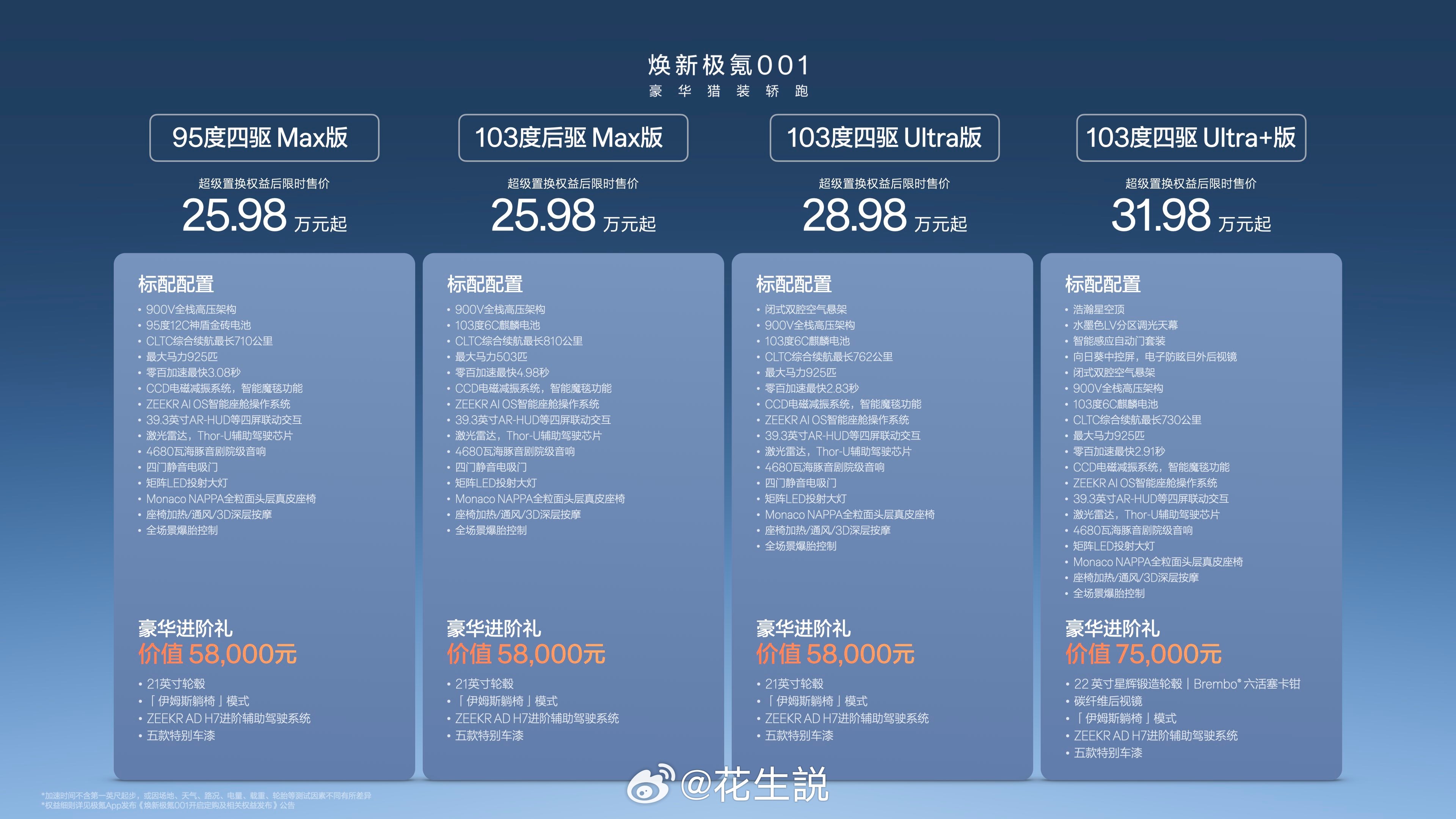25.98-31.98w,焕新极氪001上市了。先说更新了啥:全栈900V平