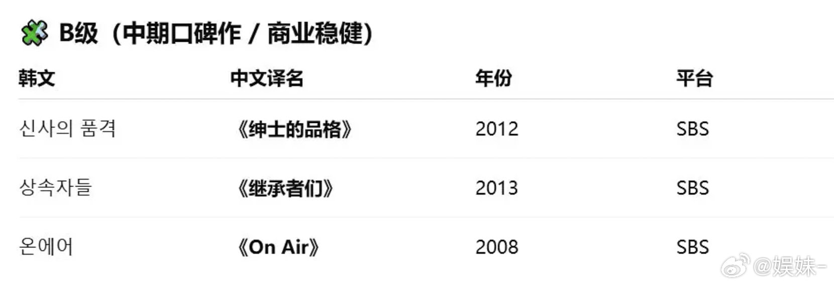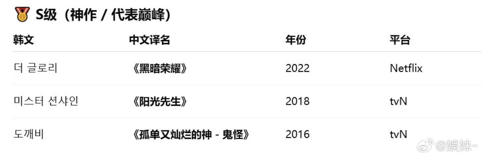 她的剧我只get到黑暗荣耀, on Air和 阳光先生