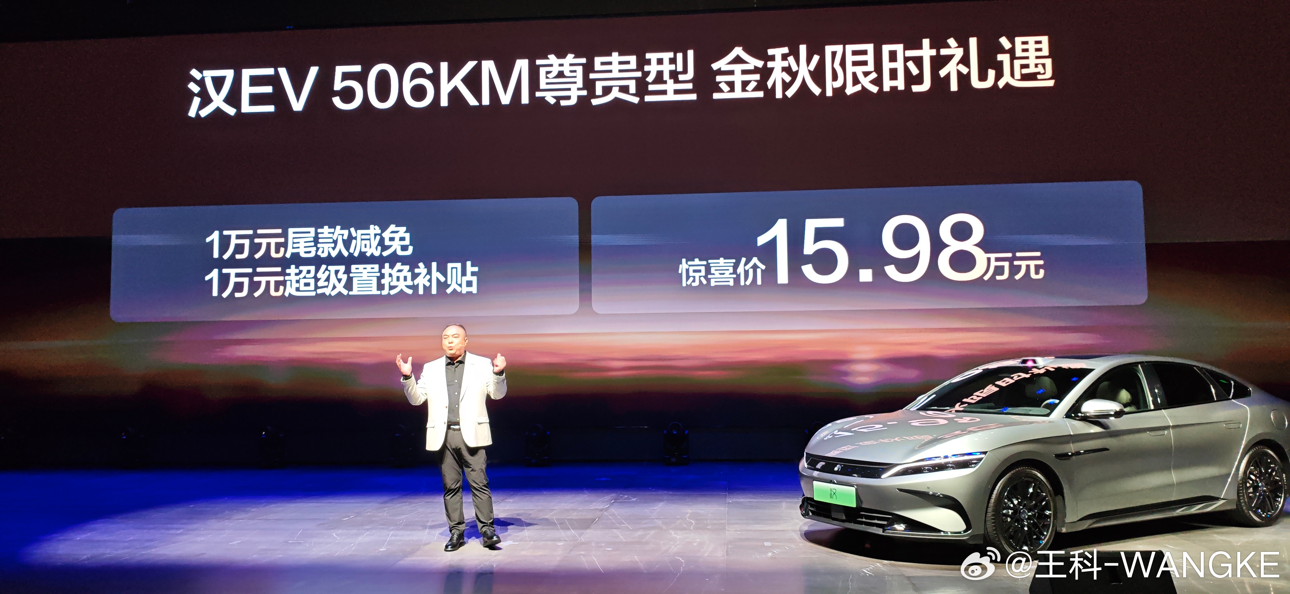 比亚迪汉长续航版15.98万起上市今天比亚迪汉长续航版正式上市,以15.98万