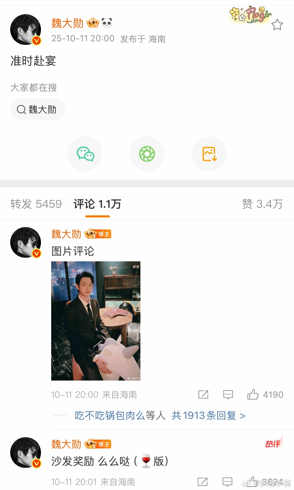 魏大勋微博营业!和孟宴臣说生日快乐的第三年,准时赴宴[期待]