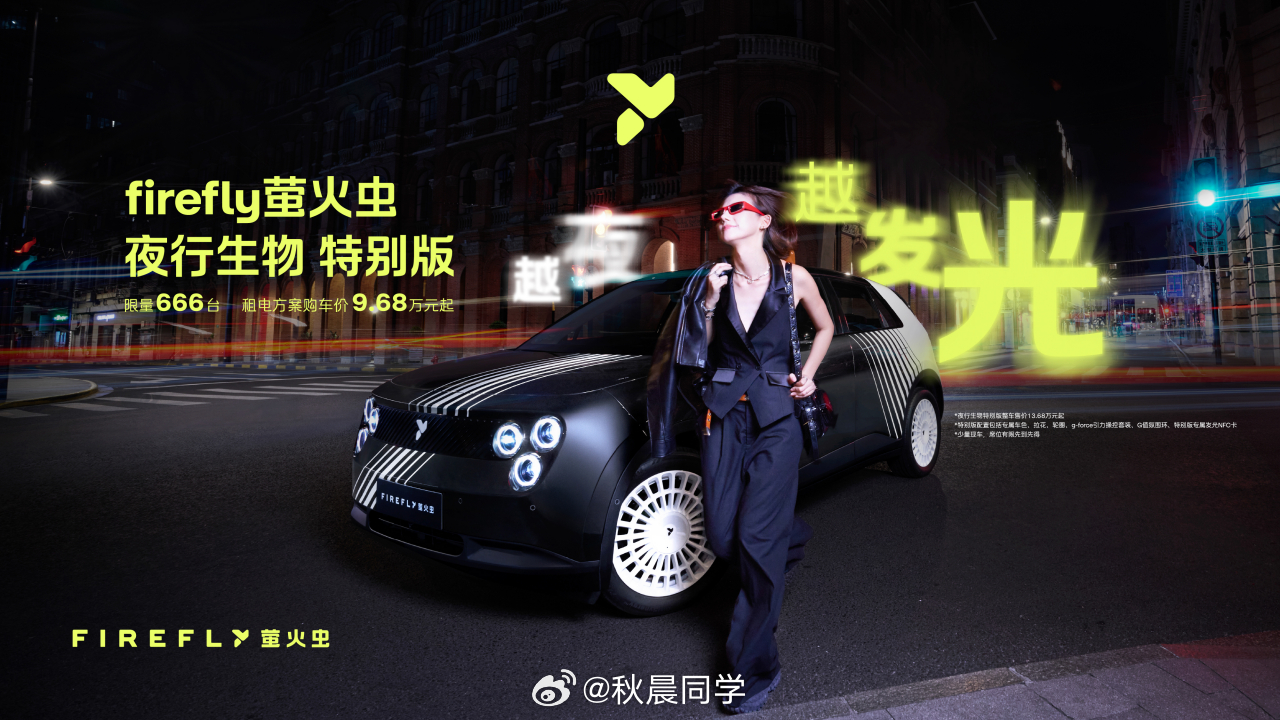 萤火虫夜行生物特别版正式上市,租电9.68万元起,主打精品小车定位,限量666台