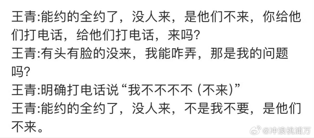 好好好都别吵了!我是王青闺女,我愿意参加嫂子生日会行了吧!我有头又有脸,怎么没有人打电话邀请啊,我会去的,不会像他们打电话说不去的!王鹤润工作室辟谣吵架原因十一刷到宝了
