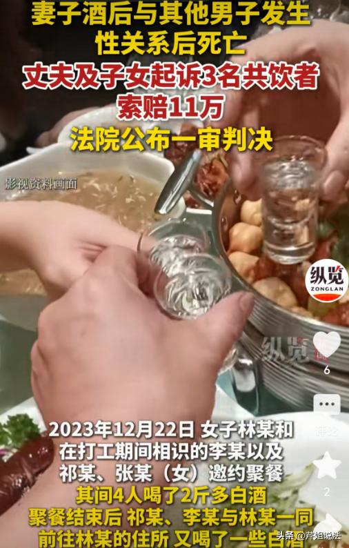 青海大通,林女士和李某、祁某、张某四人吃饭,两瓶酒下肚,饭后张某回家,祁某和李某随林女士到她的住处又喝了些白酒,晚上十一点祁某离开,林女士和李某发生了关 系,第二天早上李某发现林女士已经没有了呼吸后通知了林女士的丈夫赵先生,三人因手上的钱都不够,赔偿了一些钱后还写下了欠条,却迟迟不肯在付钱,林女士的丈夫赵先生和子女将起诉了这三人个欠款人,最终的判决结果却出人意料! 据悉,2023年12月22日,林女士和男子李某在工厂打工相识后,又结识了男子祁某和女子张某。 因为祁某和张某都是单身,当天林女士和李某想着撮合祁某与张某,便约着四人一同前往饭馆吃饭。 饭桌上,大家边聊边吃喝,两瓶白酒很快就被四人喝完了,饭后,张某觉得自己有些喝多了,便独自回家休息。 而祁某和李某在林女士的邀请下,跟着她来到了她的住处,祁某觉得还没尽兴,又从柜子里拿出一瓶白酒,三人继续喝了起来。 一直喝到晚上十一点,祁某觉得自己不能再喝了,便起身要离开,林女士和李某也没多挽留,祁某离开后,屋内只剩下林女士和李某。 在酒精的作用下,让两人的情绪都失控了,就发生了亲密 关 系。事后李某觉得有些口渴,便去客厅倒了杯水喝,喝完后就在客厅的沙发上睡下了。 半夜,林女士突然觉得头痛的难受,她想叫李某,却怎么也喊不出来,而李某在沙发上睡得正香,完全没有察觉到林女士的异样。 第二天早上6点,当李某走进房间,看到林女士一动不动地躺在床上。 他伸手去试了一下林女士的鼻息,却发现她已经没了呼吸,李某惊慌失措地拿起林女士的手机,拨通了她丈夫赵先生的电话。 赵先生接到通知后,赶到了林女士的住处,看到妻子的状况后,当场报了警。 经过鉴定,林女士是因为脑 内 血 管 病 变,加上饮酒诱发全 脑 弥 漫 性 蛛 网 膜 下 腔 出 血 而 死 亡。 民警了解情况后,让当晚饮酒的李某、祁某和张某与赵先生商量赔偿事宜。 三人也觉得有一定的责任,李某当场付了5万元,又写了一张5万元的欠条;祁某付了2万元,写了一张3万元的欠条;张某付了2.05万元,写了一张3万元的欠条。 然而,赵先生实际只拿到了9.05万元,三人还欠他11万元一直未给。赵先生觉得三人没有诚意,便一纸诉状起诉了他们。 张某说自己饮酒后直接回家了,根本没有劝酒行为,不应该承担责任。 祁某也辩解自己虽然去了林女士的住处继续饮酒,但没有劝酒,而且还送林女士回家,已经尽到了合理的注意义务。 李某心里明白,自己虽然没有劝酒,但明知林女士饮酒了,还和她发生了亲密 关 系,事后也没有尽到注意义务,确实存在一定的过错。 李某、祁某、张某三人与林女士共同饮酒后,林女士因饮酒诱发 疾 病 后 死 亡,三人是否应该承担法律责任,承担哪些责任呢? 1,张某饮酒后直接回家,无劝酒行为,是否应承担侵权责任呢? 据《民法典》第一千一百六十五条规定,行为人因过错侵害他人民事权益造成损害的,应当承担侵权责任。构成一般侵权责任需满足四个要件,即行为人实施了违法行为、存在损害事实、违法行为与损害事实之间有因果关系、行为人主观上有过错。 张某在饭桌上饮酒后直接回家,没有实施劝酒等违法行为,主观上不存在过错,与林女士的死 亡 这一损害事实之间没有因果关系。 所以,张某不构成一般侵权责任,不应承担侵权责任,自然也无需受到处罚。 2,祁某虽在林女士住处饮酒,但无劝酒,还送林女士回家,尽到合理注意义务,是否应承担责任,会受到什么样的处罚? 据《民法典》第一千一百六十五条,祁某虽在林女士住处继续饮酒,但没有劝酒行为,并且在饮酒后送林女士回家,已经尽到了合理的注意义务。 这表明祁某没有实施违法行为,主观上不存在过错,与林女士的死 亡 也没有因果关系。因此,祁某不构成一般侵权责任,不应承担责任,不会受到处罚。 3,李某虽无劝酒,但明知林女士饮酒,还与她发生亲密关系,事后未尽注意义务,存在一定过错,应承担什么责任呢? 《民法典》第一千一百六十五条规定了一般侵权责任的构成要件。李某虽无劝酒行为,但明知林女士饮酒,还与她发生亲密 关 系,事后未尽到注意义务,存在一定过错。 不过,林女士作为成年人,明知自己有基础病仍饮酒,且饮酒后和李某发生关系,对自身的 死 亡 负有直接责任。 最终,会怎么判决呢? 审理认为:张某饮酒后直接回家,无劝酒行为,不承担侵权责任;祁某虽在林女士住处饮酒,但无劝酒,还送林女士回家,尽到合理注意义务,不承担责任;李某虽无劝酒,但明知林女士饮酒,还与她发生亲密关系,事后未尽注意义务,存在一定过错。 不过,林女士作为成年人,明知自己有基础病仍饮酒,且饮酒后和李某发生了 关 系,对自身的死 亡 负有直接责任。 最终,判决祁某和张某不承担责任,李某需向赵先生支付2万元赔偿。