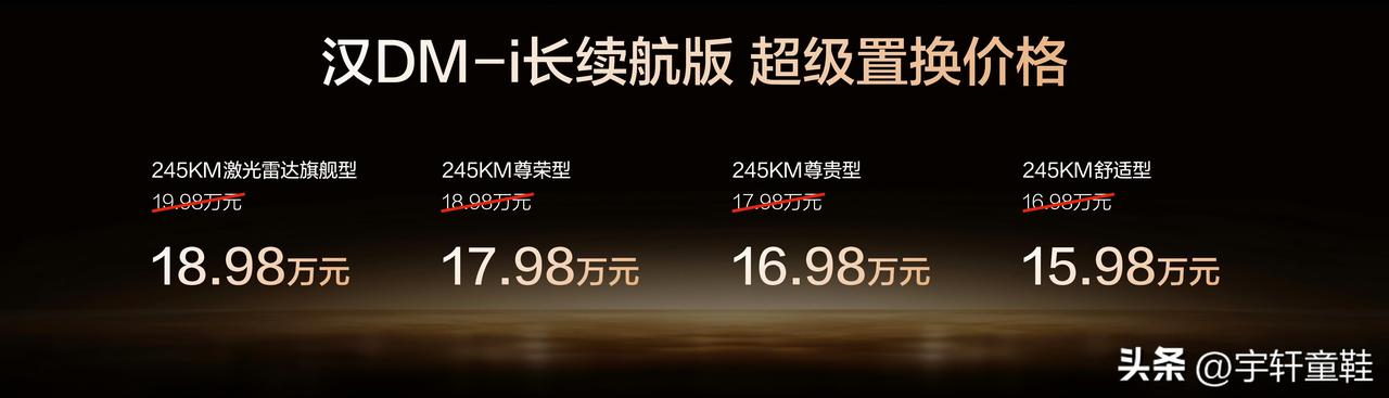 比亚迪汉245KM卖15.98万,那离14.98万还远吗?虽然对于新用户来说,