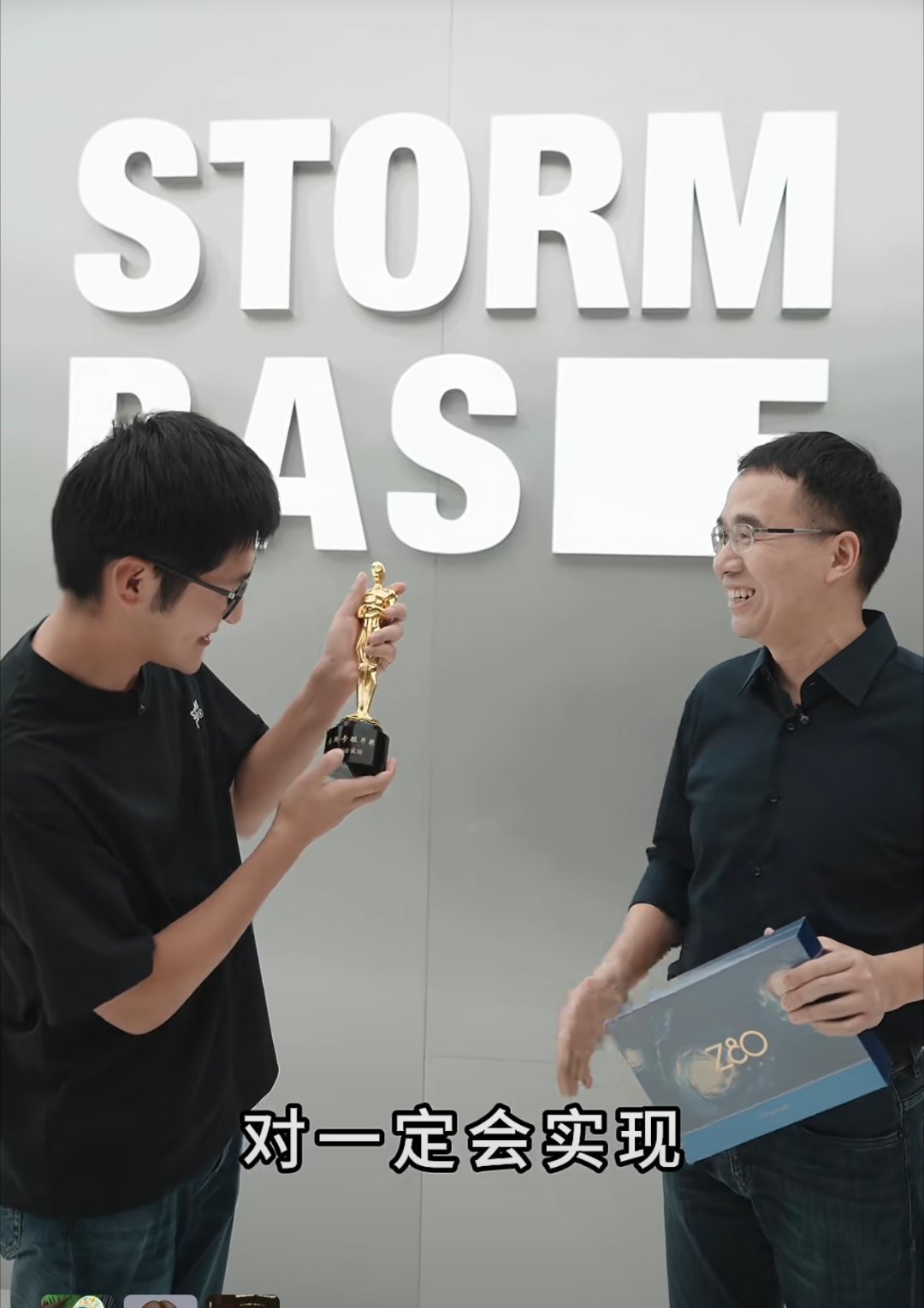 前有Tim给老罗送手机,现在倪总给Tim送手机,还多了个奥斯卡小金人。你看Tim笑得多开心[笑cry]